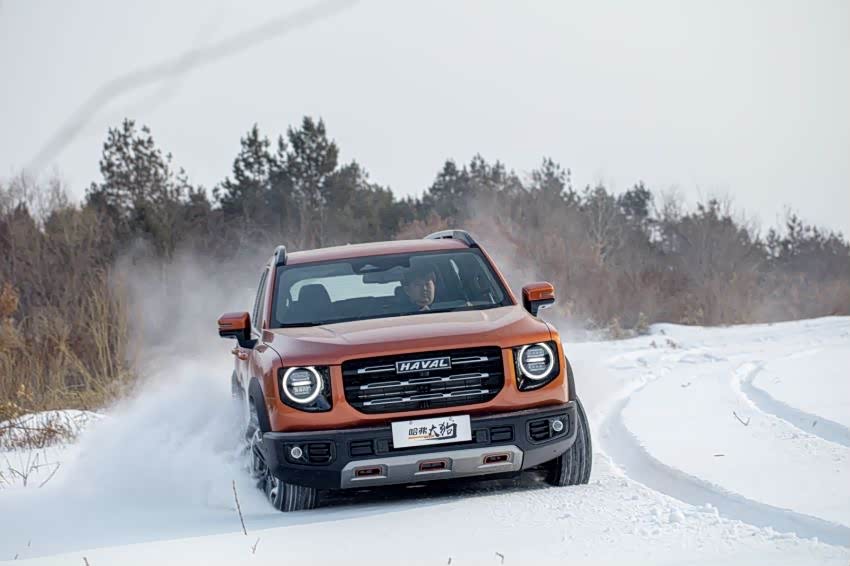 结合以上所说的各种硬性配置来看,这款车的确具备不俗的轻度越野能力。而在本次试驾过程中,会有雪地路况、丛林道路时哈弗大狗2.0T车型表现的相当从容,特别是在雪地模式的加持和一众电控组件的控制下,能够合理地将哈弗大狗2.0T车型的扭矩分配以及降低油门开度,来确保每个轮圈能够有着充足的扭矩与附着力通过障碍路段。