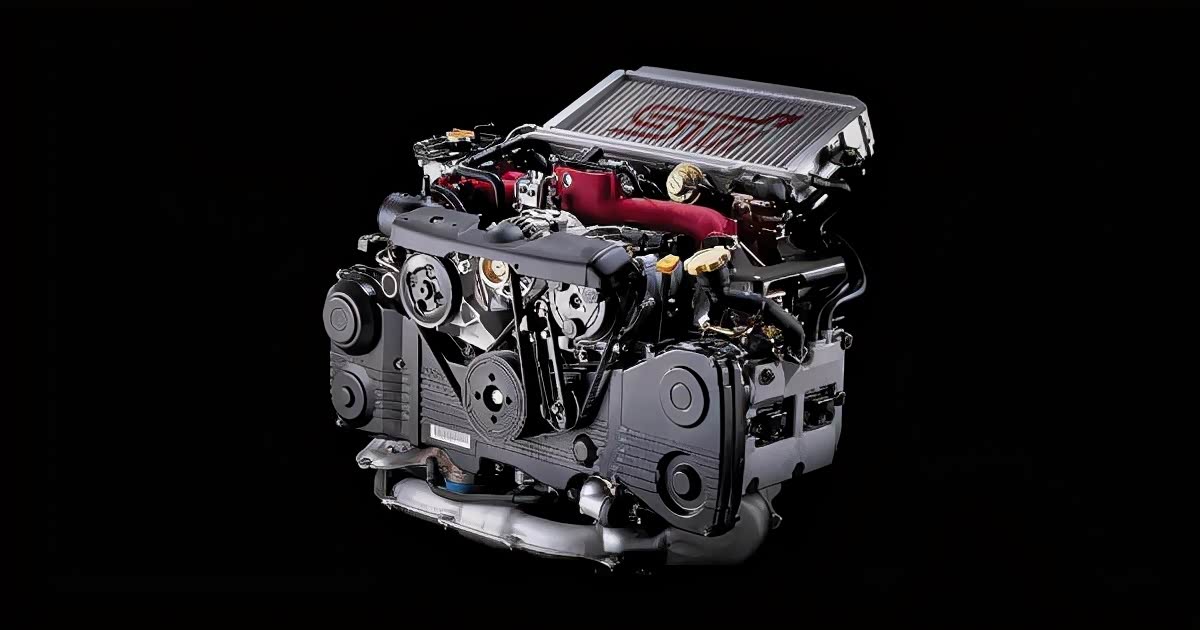 正如其名,22B搭载了一台型号为EJ22的水平对置发动机,这台发动机在EJ20的基础上通过扩缸的方式将原有的排量提高到2.2升,关键部件也进行了加固和强化,虽然依旧是280马力,但扭矩提高到365 N·m,实测0~100成绩在5秒以内。