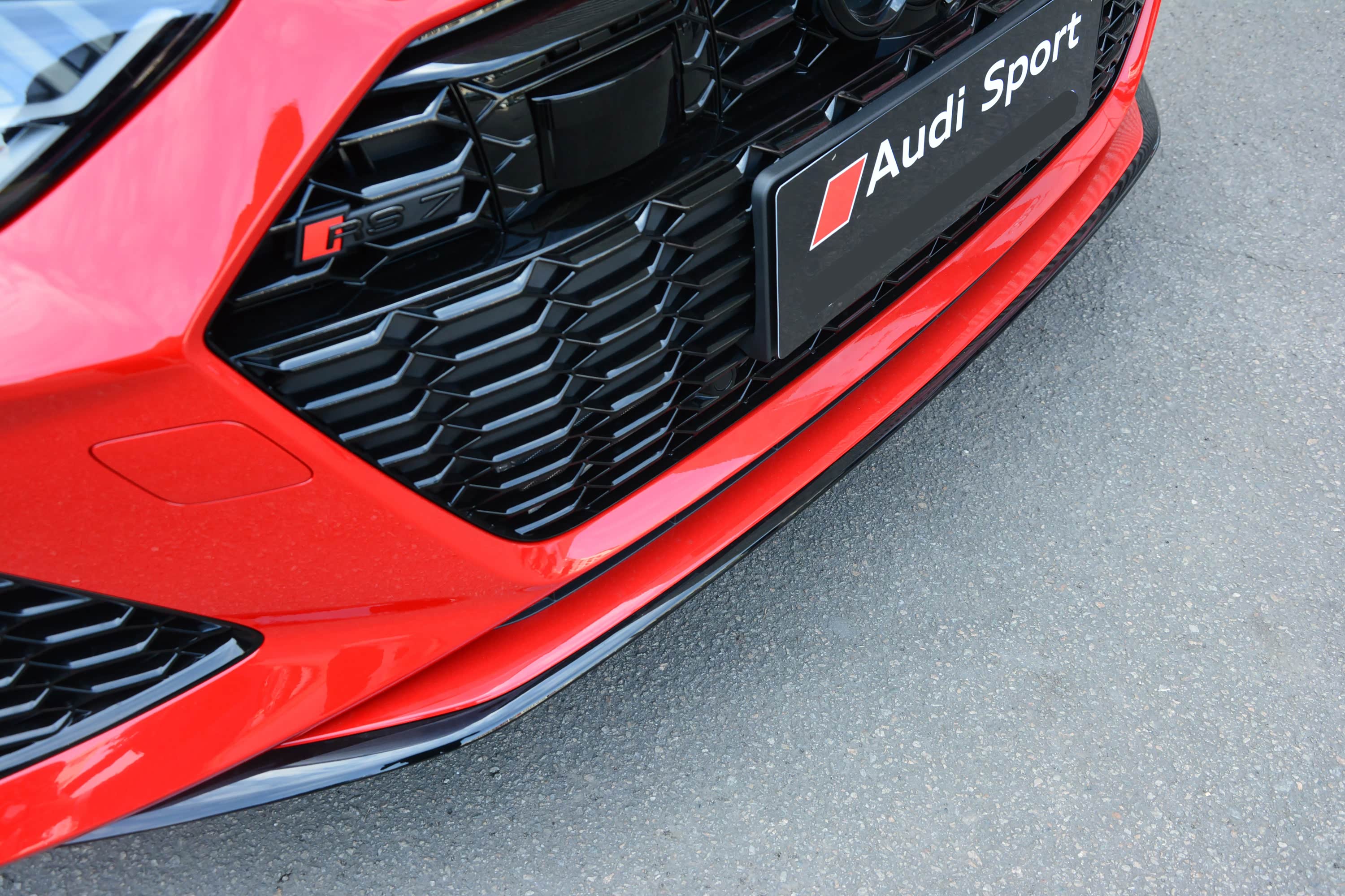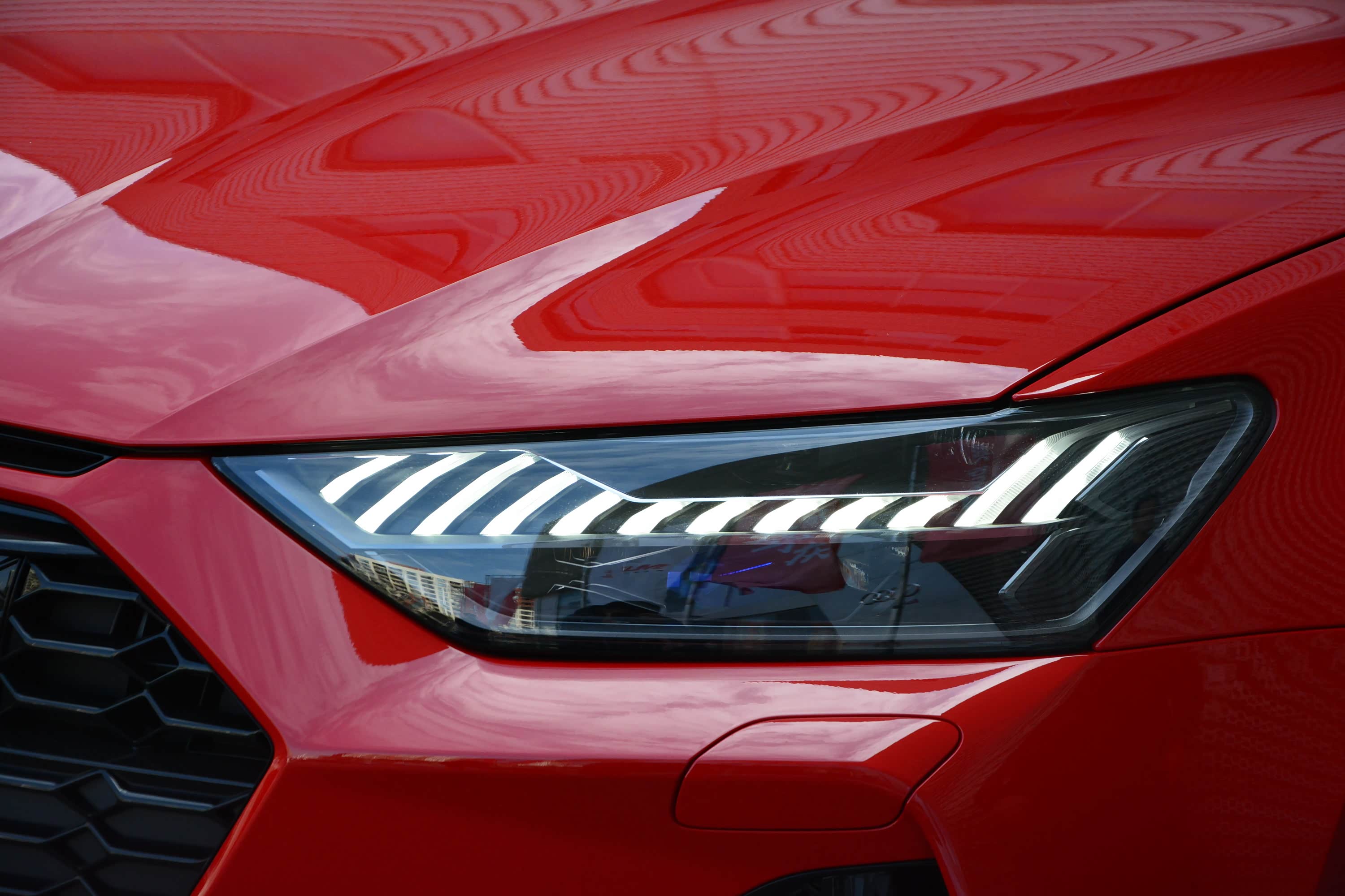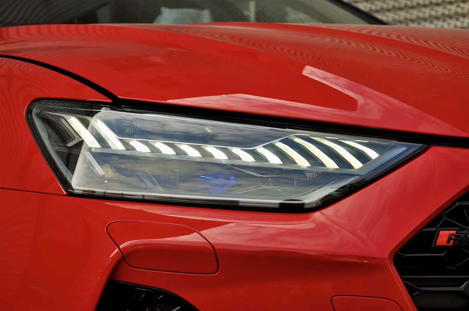外观方面,新车与全新奥迪A7保持一致,但换装了专属的空力套件,让车辆看起来更加凶狠,尤其是前包围,尤其是大尺寸的六边形格栅,采用了蜂窝状中网设计,且为高亮黑材质,能提升车辆的视觉冲击感。此外,前包围两侧大尺寸的三角形格栅,如猿牙般充满杀气。另外,两侧格栅和前包围下方都加入了高亮黑饰板,展现运动感的同时也很有细节美。