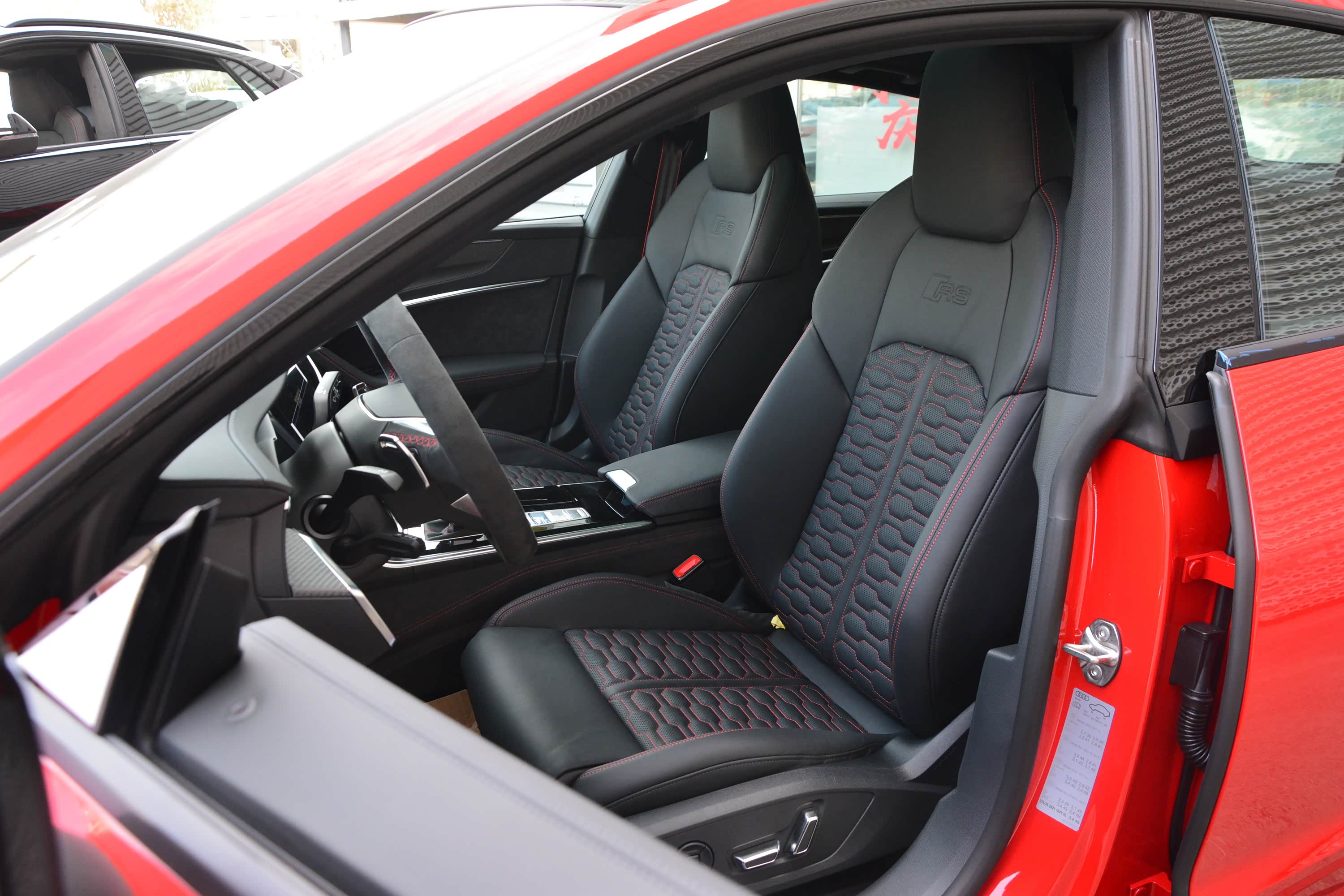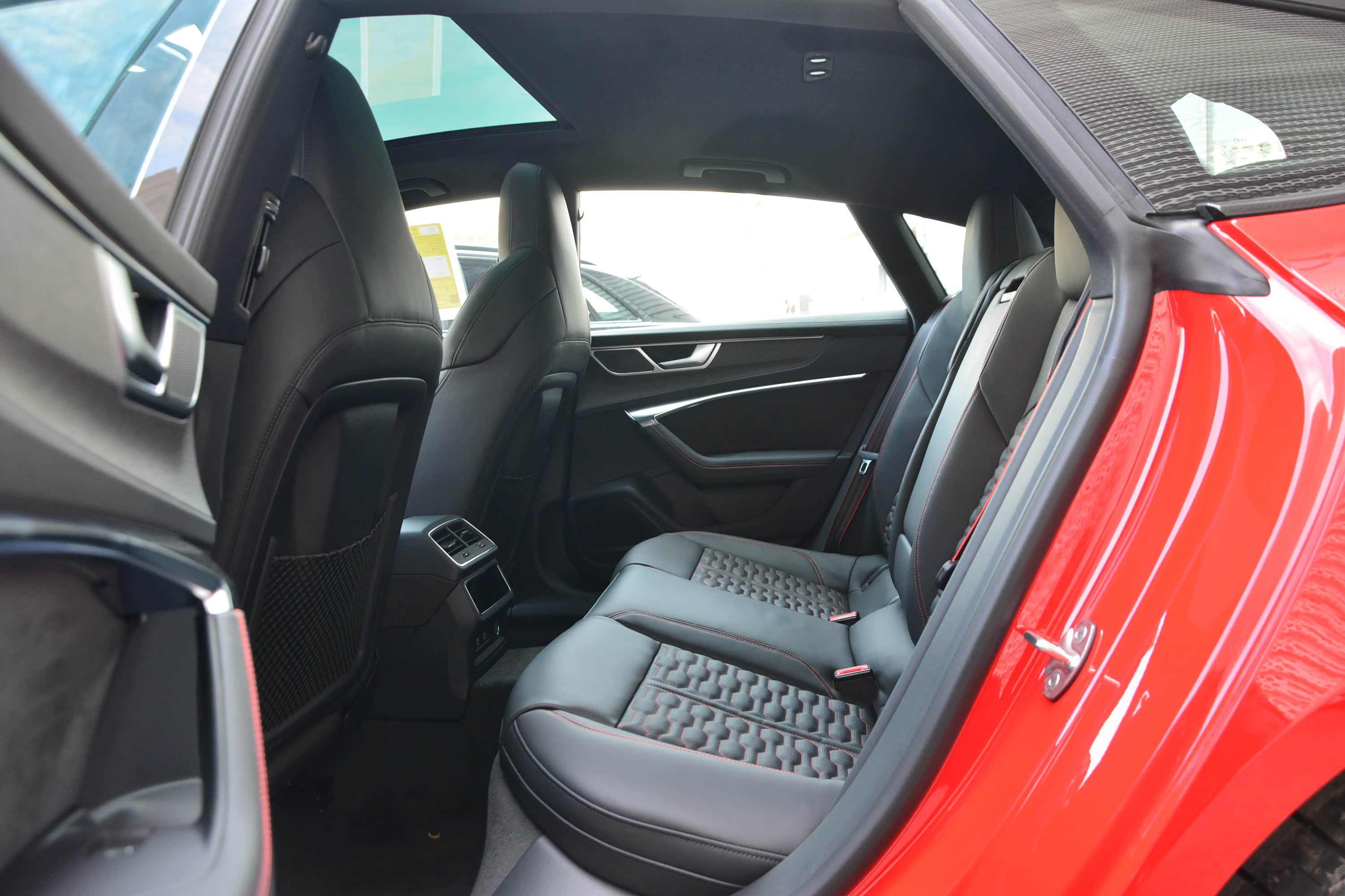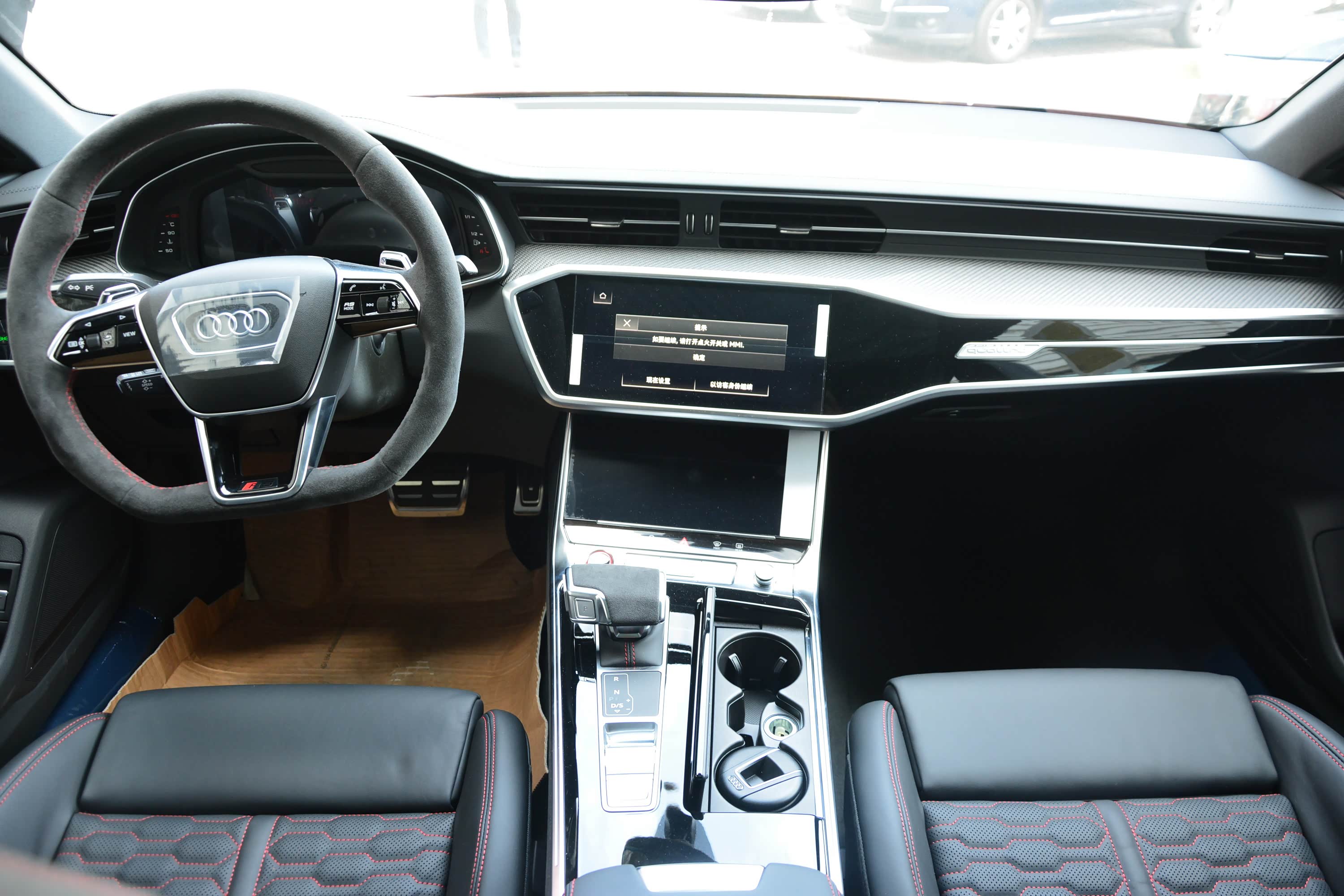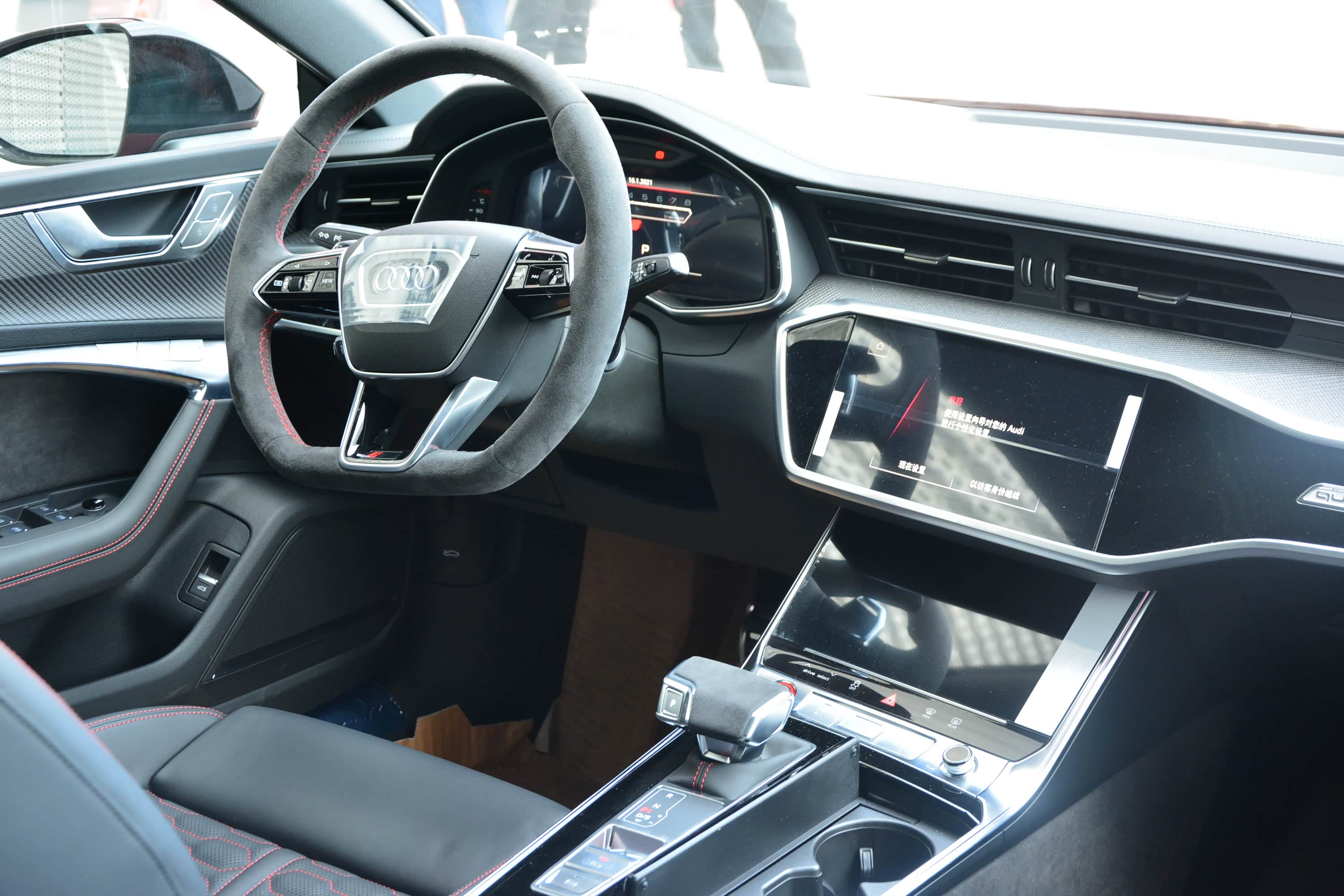 内饰方面,新车整体同样与奥迪A7保持一致,主要是细节上的调整,让其更显独特。譬如采用Alcantara材质+红色缝线的D型方向盘,运动感满满,视觉上也相当引入瞩目。另外,12.3英寸全液晶仪表盘也针对RS车型有专属的界面调整,并且可显示功率、扭矩、车身的实时G值等参数。至于中控屏、空调等功能控制屏相信大家都不陌生了。