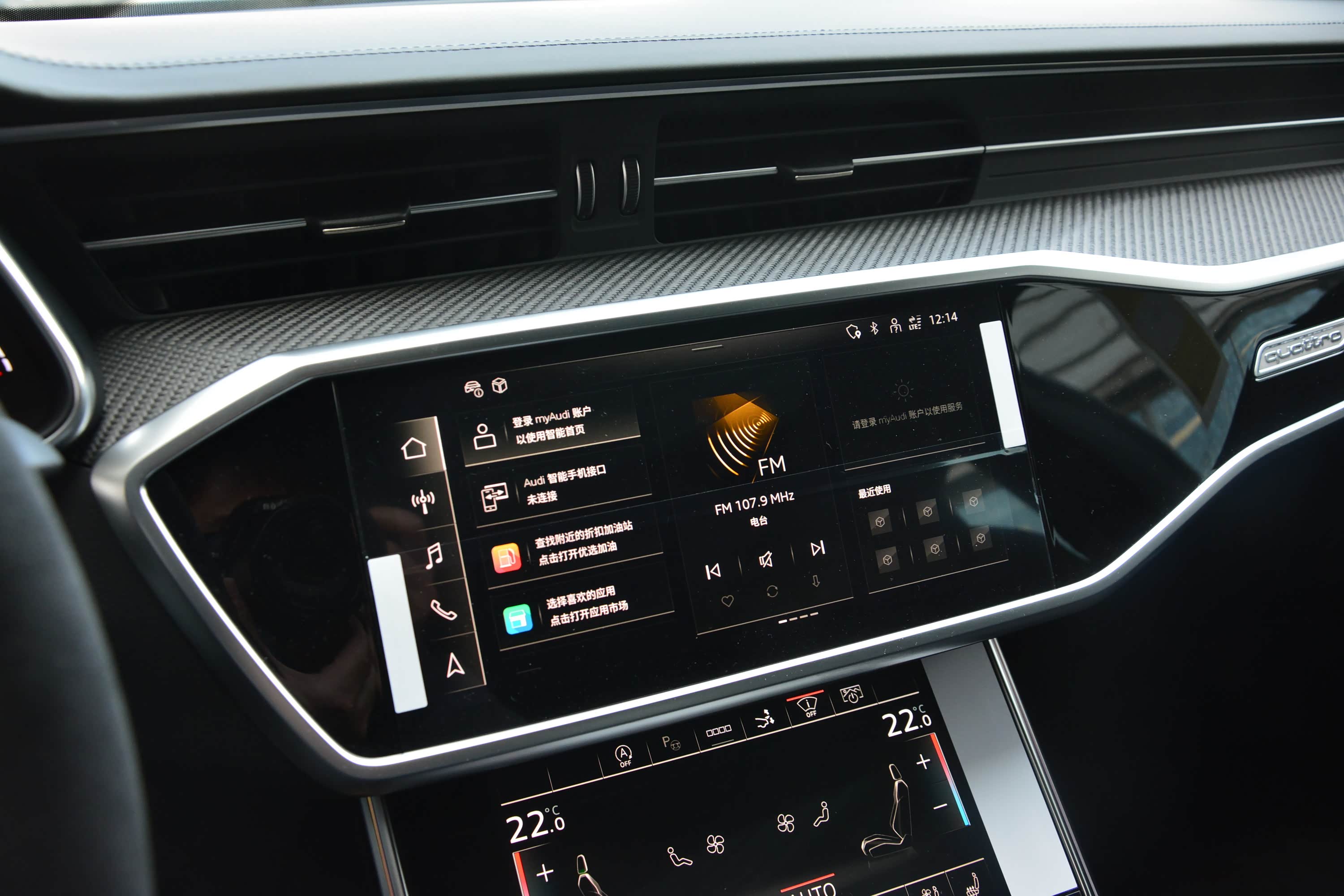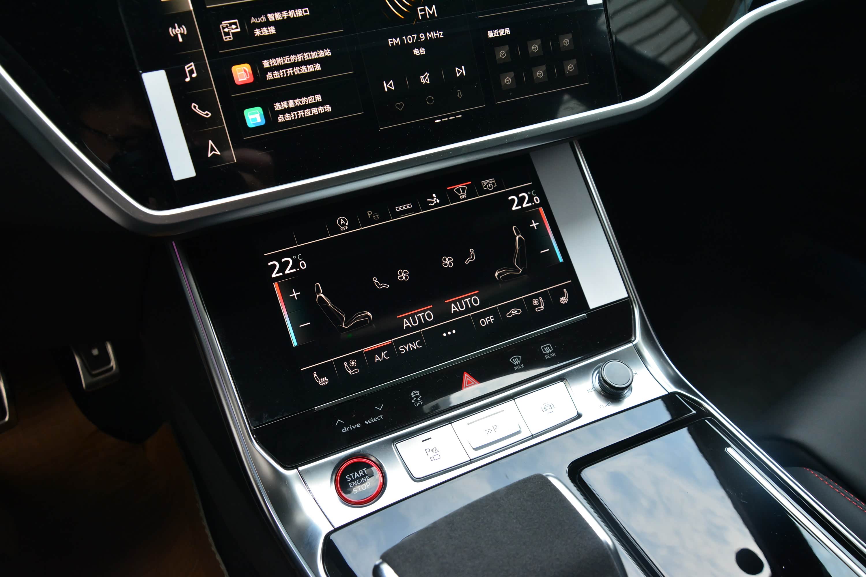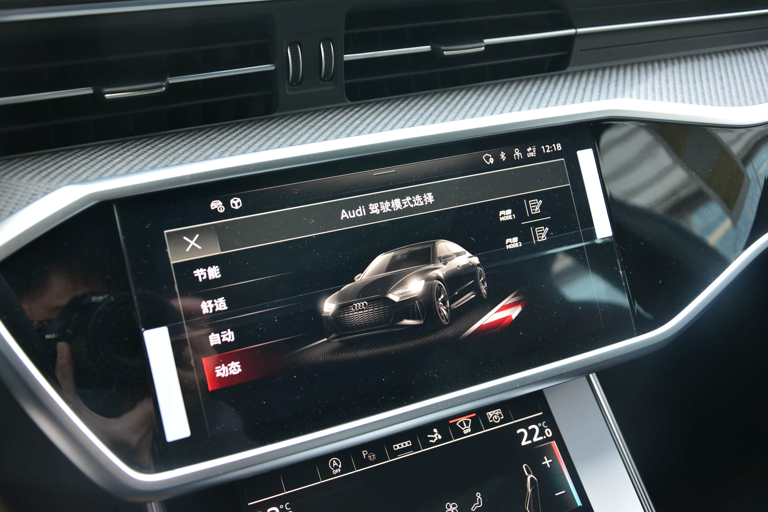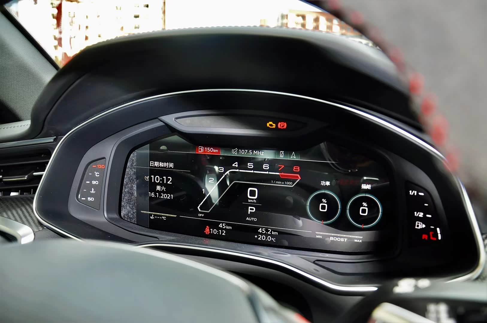 内饰方面,新车整体同样与奥迪A7保持一致,主要是细节上的调整,让其更显独特。譬如采用Alcantara材质+红色缝线的D型方向盘,运动感满满,视觉上也相当引入瞩目。另外,12.3英寸全液晶仪表盘也针对RS车型有专属的界面调整,并且可显示功率、扭矩、车身的实时G值等参数。至于中控屏、空调等功能控制屏相信大家都不陌生了。