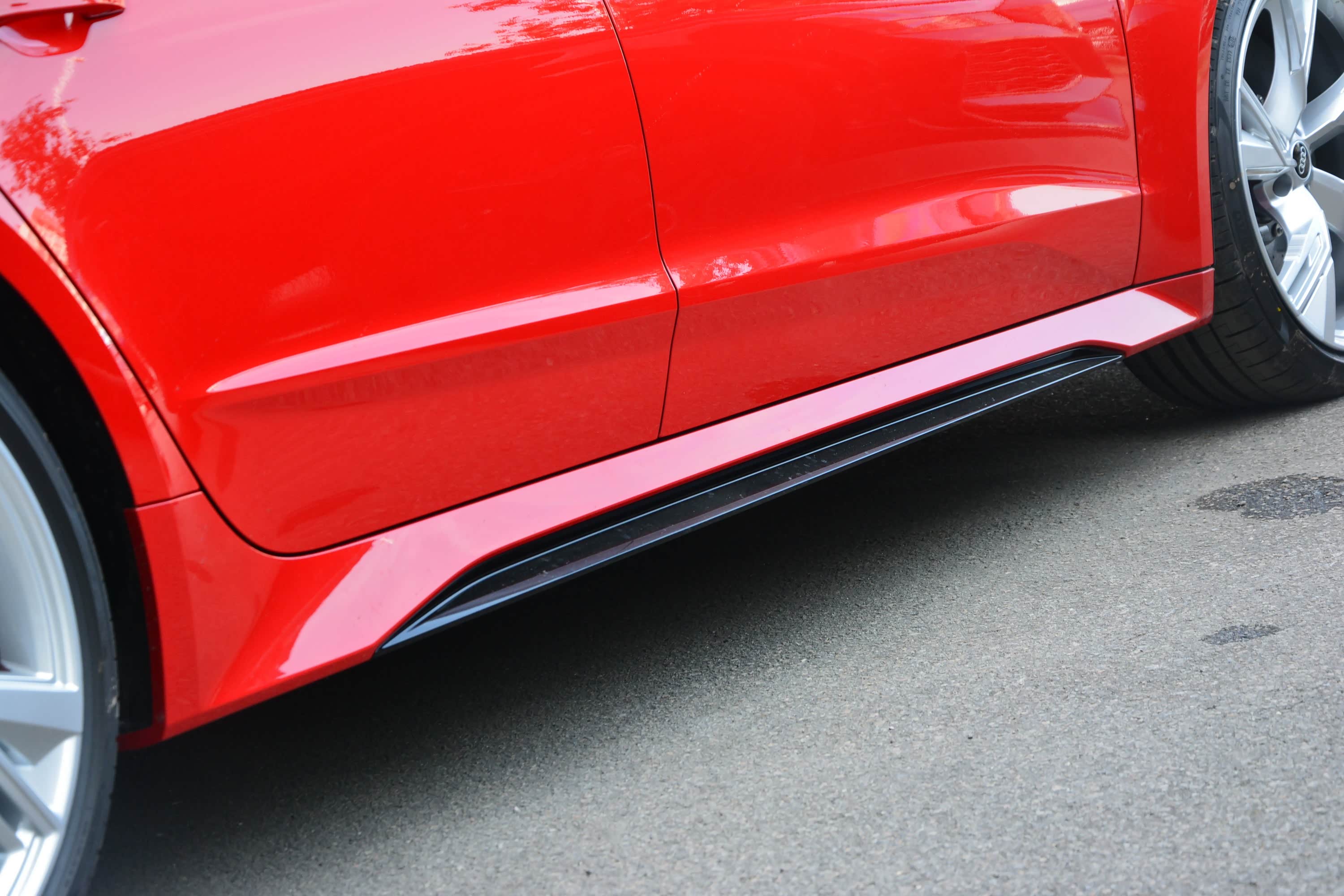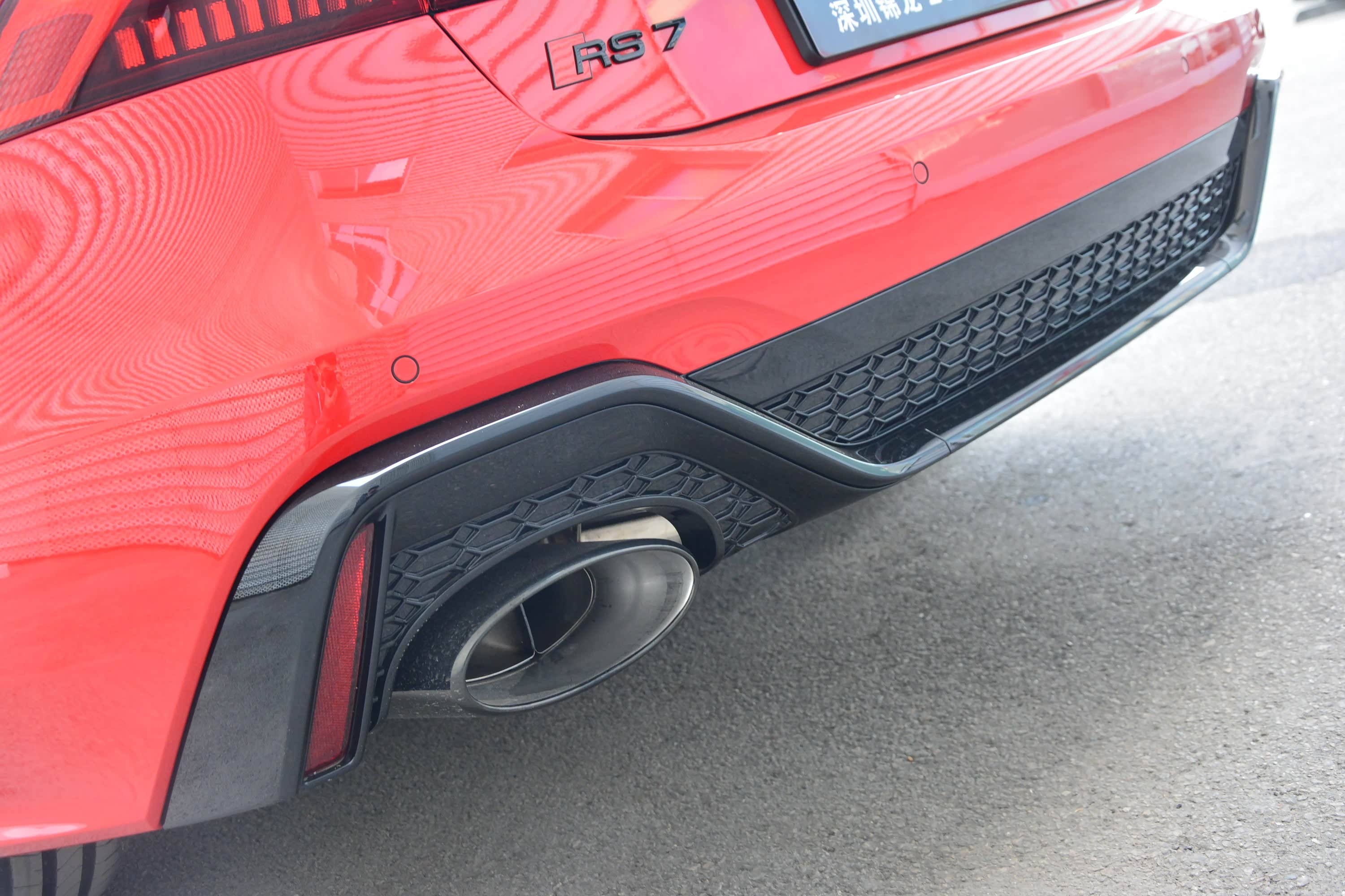 车侧方面,新车看上去比普通版奥迪A7显得更长、更宽、更矮,而溜背式的造型也十分动感。另外,外后视镜为高亮黑材质,并且在侧裙上还加入了高亮黑饰条,这些细节的改变同样很抓人眼球。值得一提的是,新车将提供13种不同的外观颜色,包括两种特定的RS色调:Nardo灰色和Sebring黑色。