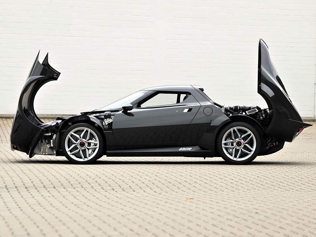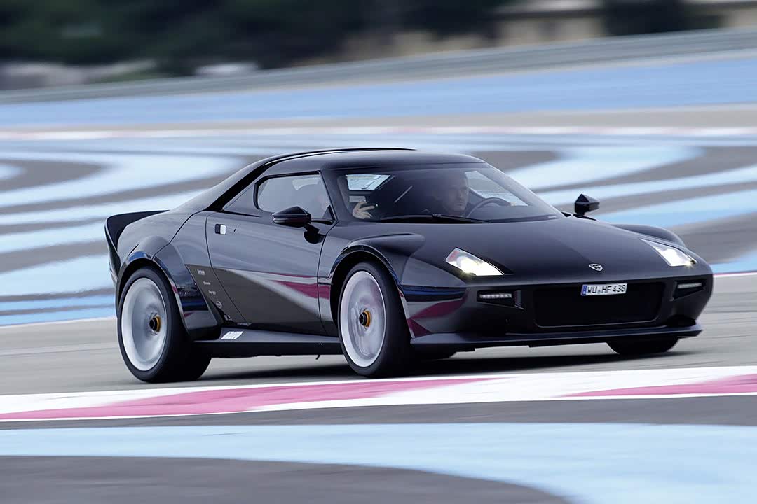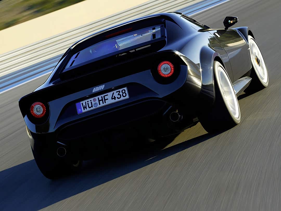 这款跑车在外形设计方面致敬了经典的蓝旗亚Stratos赛车,无论是凸出车体的宽大翼子板、标志性的楔形车身还是双圆形尾灯,都能让人一眼认出它就是那款曾经在拉力赛场叱擦风云的蓝旗亚赛车的“后代”。