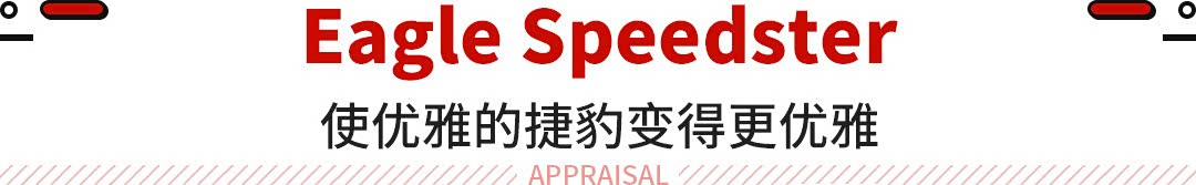 Eagle Speedster与其它Eagle E-TYPE一样,基于客户提供的原版E-TYPE跑车升级改造;但是相比于其他车型复刻经典稀有版本的做法,Speedster更像是一种对经典车型进行再创作的作品。Eagle的设计师对原版E-TYPE跑车的外形线条与曲面进行优化,取消当年因法规要求而必须安装的防撞杆,通过现代制造工艺使E-TYPE跑车雪茄型车身的曲面变得更加圆滑流畅。搭配经过切割改型而变得更加低矮、倾斜的前挡风玻璃,使其获得更显低矮、宽大的造型。