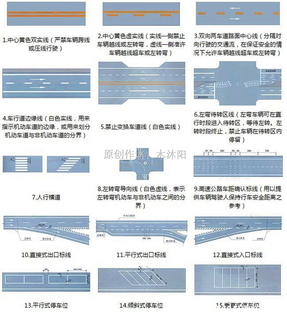 道路标线是指在路面上用线条、箭头、文字、标记等等向驾驶员传递交通信息的标志。我们在学驾驶前,都需要通过科目一考试,其中标注了很多常见的道路标线。不过当驾照拿到手后如果不经常开车,这些知识可能都忘了,再回想估计只能记得实线和虚线。今天小木就和大家回顾一下。