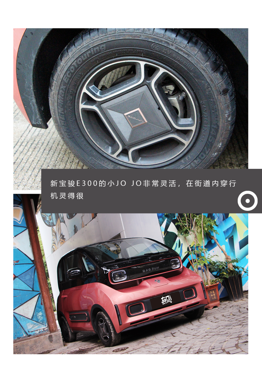 神奇的事来了。只要你和我一样,看到过实车,会发自内心的觉得这货不能大脚,大了反而就难看了,这个tini-tiny脚就该长在新宝骏E300上。