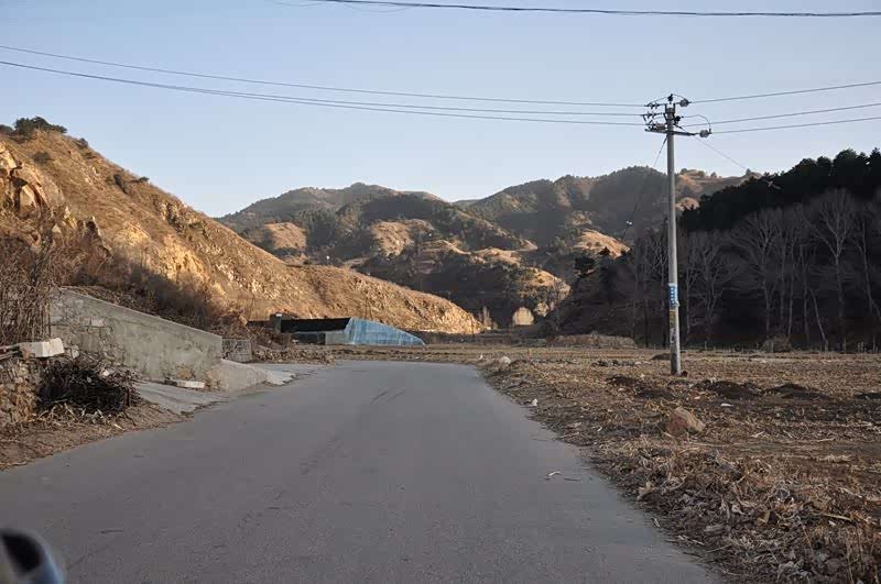 行车约40公里,终于来到易县摩天岭脚下。这座山对得起摩天岭的称号,确实很高大,较高处还有凸起的“小尖”。借助手指目测,距顶峰约2公里,实在找不到可供汽车通行的路了。查看老地图,周围在抗战时期没有交通干道,所谓摩天岭战斗,应该指的不是这里。本想往前徒步走一段,可天气已暗,大风一整天没停,气温为零下24度,只好作罢。