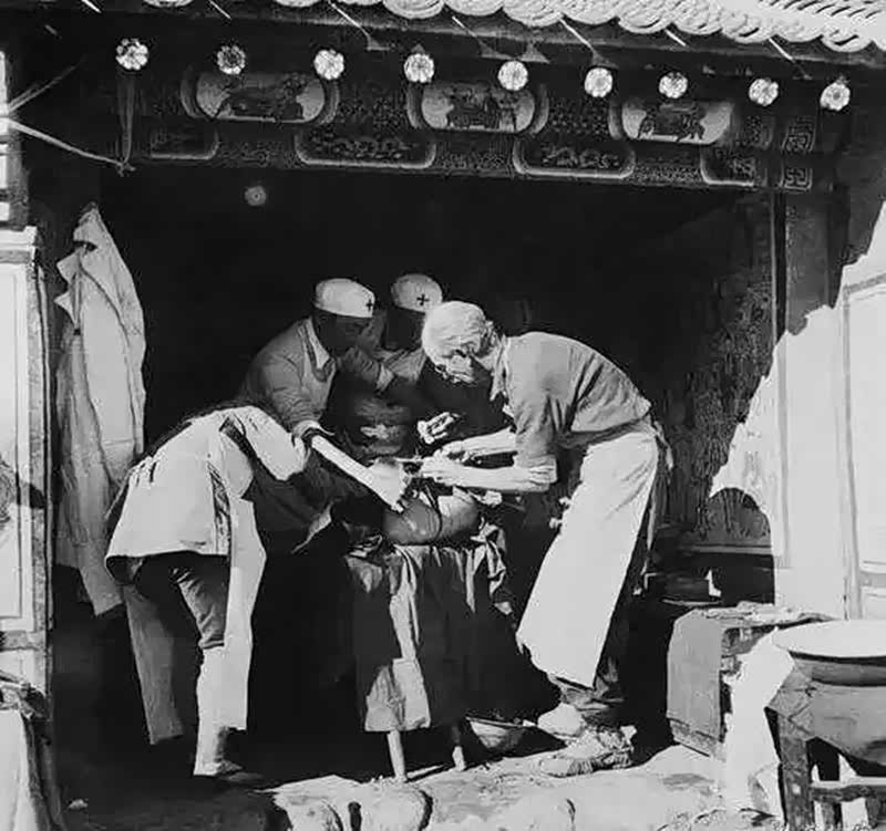 书中记载,1939年10月29日,白求恩亲临火线,在这座小庙里,为摩天岭战斗伤员做手术时,不慎割破手指,不久后在另一场手术中感染,11月12日逝世(上述日期我始终没搞懂,摩天岭/麻田岭战斗发生在10月19日夜间,治疗伤员应该是10月20日)。