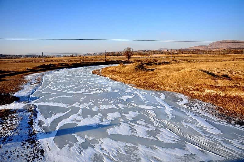 离开水库,继续往西。不久,进入张家口市的蔚县,转上一条覆盖着冰雪的小路。