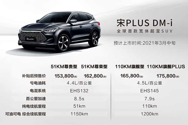 不过现阶段混动车型有着不错的续航和燃油经济性表现,比如前不久比亚迪发布的DM-i超级混动技术,同时,多款搭载了这一技术的车型也开启了预售,接下来咖哥就和大家介绍其中的一款重磅车型:比亚迪宋PLUS DM-i。它共推出4款车型,预售价区间为15.38-17.58万元,可油可电综合最高里程达到了1200km,该车将在3月中旬上市。那么比亚迪宋PLUS DM-i这款车型有什么亮点?又值不值得大家期待呢?接下来咖哥就和大家好好聊一聊。