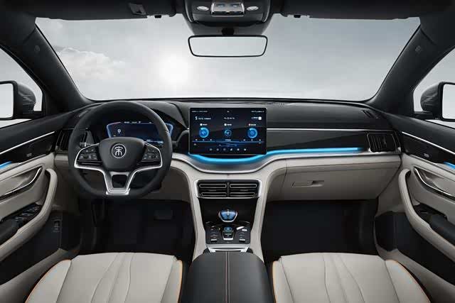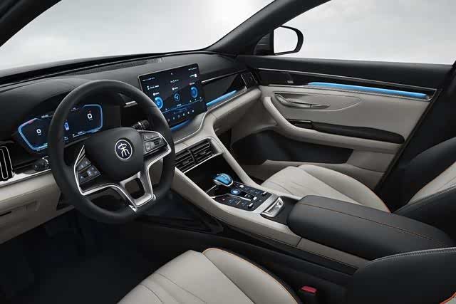 车内配备了12.3英寸全液晶仪表盘,三辐式皮质方向盘尺寸适中,手感出色,左右两侧多功能按键分别为ACC自适应巡航、多媒体控制、语音控制等功能。中控区域预计将继续搭载12.8英寸自适应旋转悬浮中控大屏,内置第三代DiLink智能网联系统,具备智能语音、音乐生态、深度定制地图导航等功能。