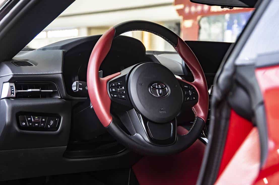 当你欣赏完它的外观和动力之后,在拉开门的瞬间看到这个方向盘的时候它还是非常具有代表性的一台丰田车型的方向盘设计,红黑双色的搭配自然也是不可缺少的。