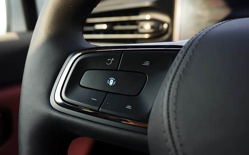 此外,NOP功能的开启是需要条件的,首先需要设置导航路线,通过路径规划之后,当行驶到NOP模式规划的道路时,车辆会提示你开启该功能,在适当的时候,按下多功能方向盘左边中间的按钮即可。