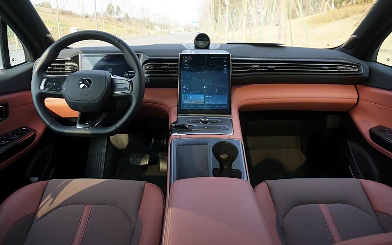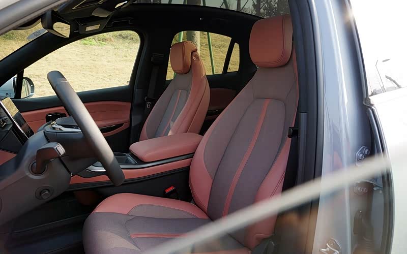 Haptex®和织物镶拼座椅,搭配喜马拉雅棕这样大胆的专属配色,第一视觉感便透着一种年轻活力,细品,则还有一种精致的高级感,特别是细节处点缀的蔚来LOGO,相信能get到大部分女性朋友内心的小心思。