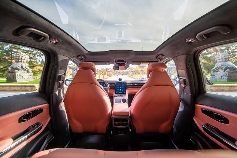 我们拿到的是一台性能版车型,搭载前160kW高效能永磁电机,后240kW高性能感应电机组合,最大功率544马力,最大扭矩725牛·米,零百加速仅需4.5秒。实际体验来看,如果没有心理准备,运动模式下还是会有点上头,舒适模式下动力输出相对平缓一些,当然,只要放大胆子深踩电门,同样可以获得强悍的加速感受,只能说动力是很富余的。