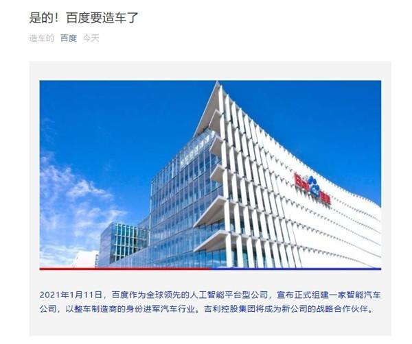 “是的!百度要造车了”1月11日,当百度以此为标题的公告进入大众视野时,人们似乎都已能从短短七个字中看到百度振臂高呼的样子。两天之后,富士康也发布了公告,宣告着自己要跨入汽车代工生产行业,为第三方企业代工造车。