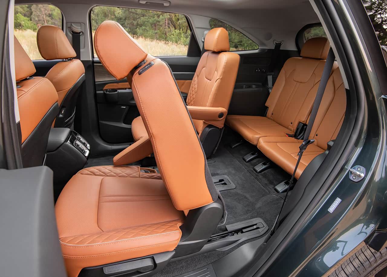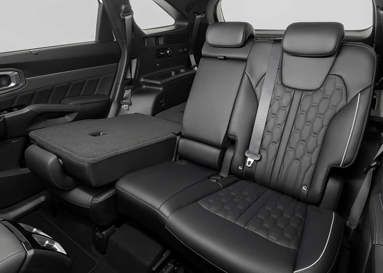 采用全新平台打造的索兰托不仅仅在尺寸上加长,还具备更紧凑的发动机舱和更短的前后悬,带来的好处是车内空间更加充足,从海外版和国内亮相的官图来看,新车或将提供2+3的五座,2+2+2的六座以及2+3+2的七座三种布局,其中7座版本第二排座椅可以前后移动,C柱内部做了抓手,方便第三排进出和乘坐,满载状态下,后备箱空间187L(混动车型179L)。