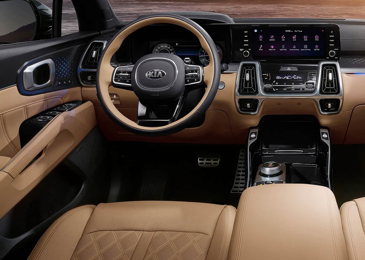 配置方面,全新索兰托支持 CarPlay和Android Auto链接,配备起亚UVO Connect远程信息处理系统,配合智能手机可以实现交通信、天气预报、景点和停车等显示,蓝牙最多可连接2台手机,同时该车还将配备HUD抬头显示、12扬声器BOSE音响、64色氛围灯等