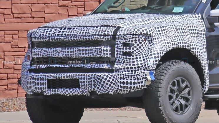 这款全新福特F-150猛禽外观设计与普通版本相似,前脸最显眼的是硕大的进气格栅格栅设计,内部或改为黑色蜂窝设计,此外似乎新车的前包围还引入了空气动力学套件,那么这款全新的福特F-150猛禽性能或将得到提升。