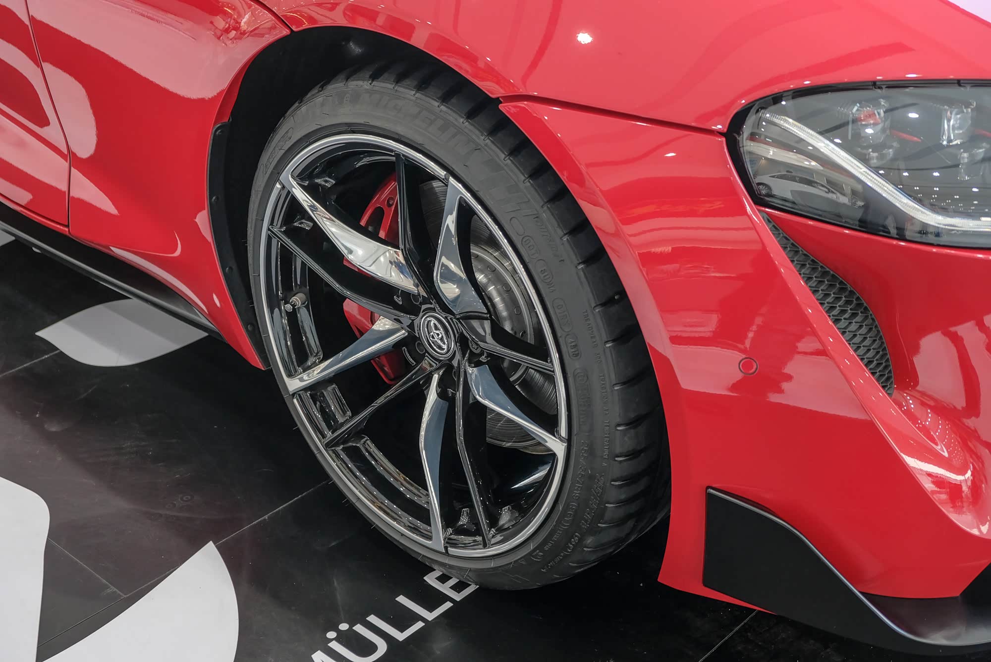 19英寸双色双五幅轮毂的造型可以用简单直接来形容,与之搭配的是来自米其林的PSS高性能轮胎,前后规格分别是255/35 ZR19以及275/35 ZR19。
