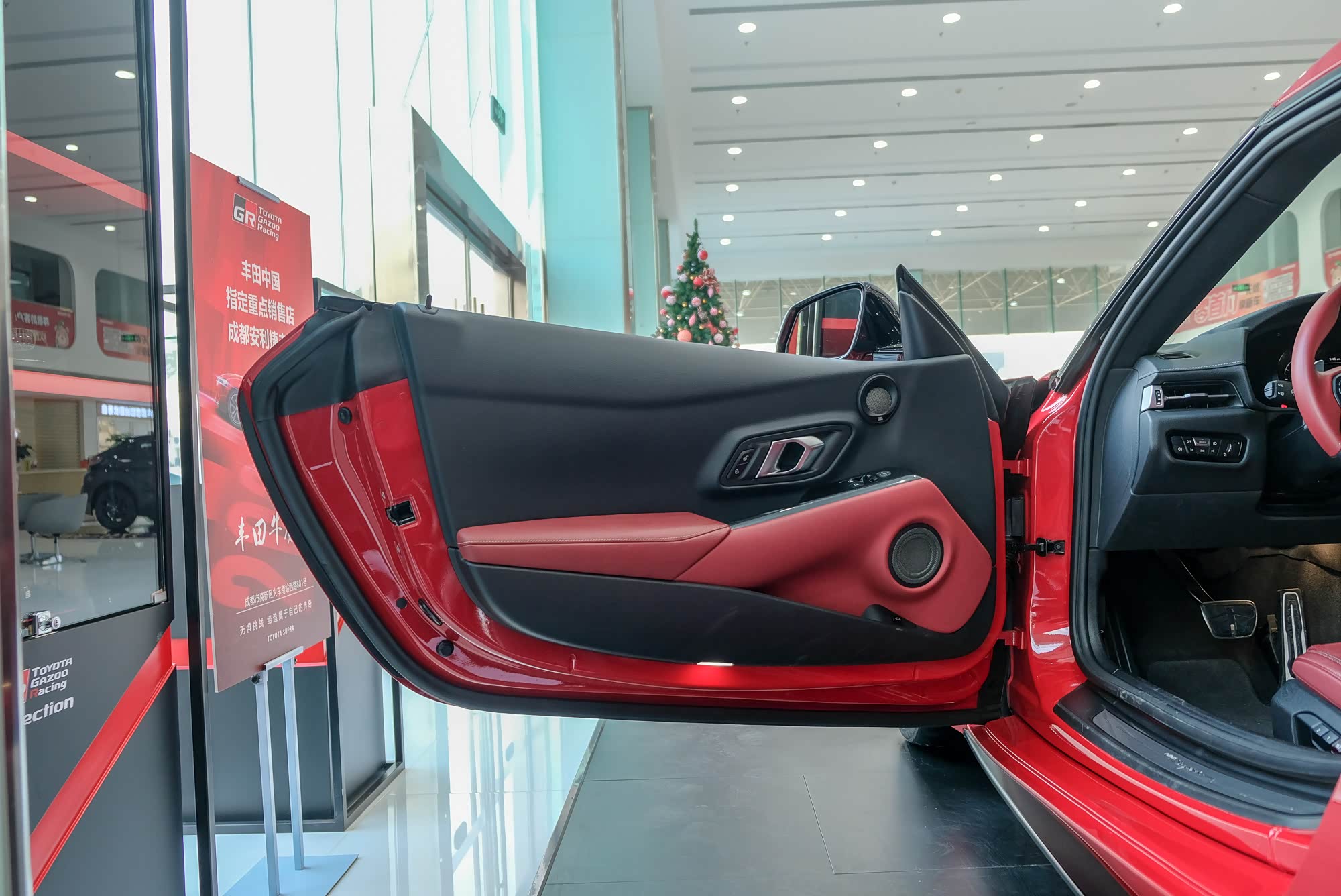 车内还有一个有趣的细节,那就是车门内侧的皮质包裹在主驾驶位采用了红色,而副驾采用了黑色,这也说明对于这样享受驾驶乐趣的车型,运动感的营造肯定是需要偏心的。