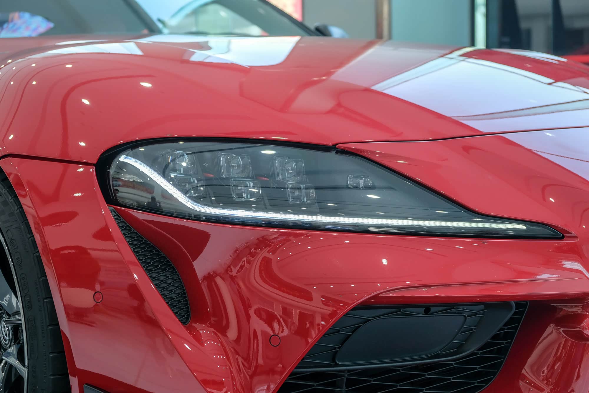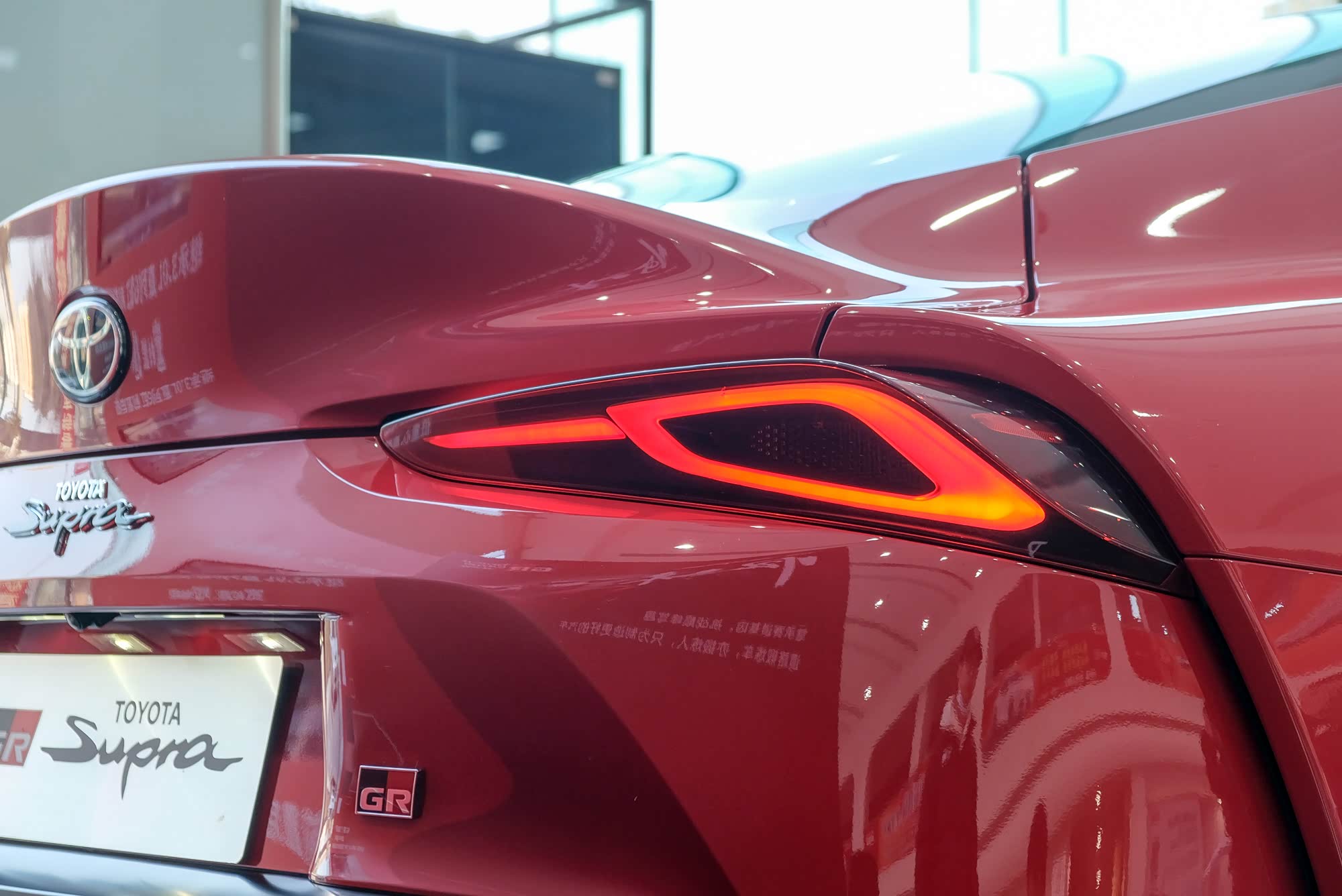 大灯的轮廓显然是在致敬经典Supra,为了强调前突的车头部分,又做了个“开眼角”的细节设计。另外前大灯为全LED光源,L型日间行车灯与前脸设计相得益彰。