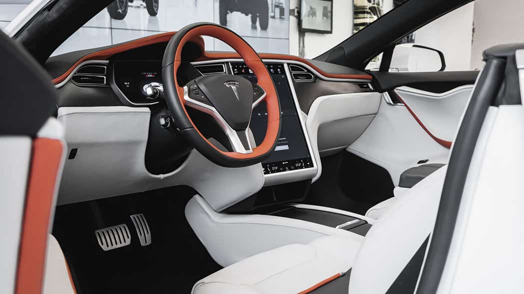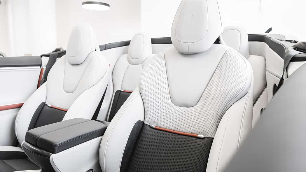 车辆的敞篷机构为软顶,厂家并没有透露开篷时间。车辆的座椅也是全新的,具备四座通风和加热功能,相比这辆车的造价非常昂贵,不过开着这辆世界上唯一一辆的敞篷Model S,感觉什么都值了。
