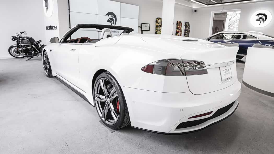 车辆最大的改动在于将Model S的四个门变成了两个门,整体比例还很和谐,看上去就像是一辆类似于宝马4系敞篷那样的2+2豪华跑车。