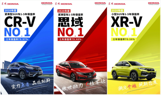 被韩老板这一提醒,我赶紧掏出手机某度了一下他提到的这几款车型的保值率,果然真香。在新鲜出炉的“2020年度中国汽车保值率报告”中,东风Honda携五款车型领跑榜单。其中CR-V凭借三年保值率79.97%,拿下2020年度紧凑型SUV车1-5年保值率榜单NO.1。旗下小型SUV车型XR-V表现同样不俗,凭借三年保值70.50%的成绩,荣登2020年度小型SUV车1-5年保值率榜单首位。在车迷中备受追捧的思域,同样是二手车市场的“神车”,三年保值率79.40%,一举拿下2020年度紧凑型车1-5年保值率榜单桂冠。