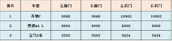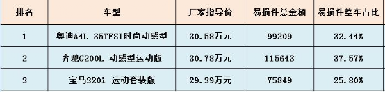 车门在交通事故中的受损几率更高,但没有让你想到的是它们的维修占比吧。看看这三强的表现,奔驰C级再次荣膺榜首。奥迪与宝马紧随其后,动辄就是过万的修理费,请问您还敢有路怒症?您还敢酒后驾驶?您还敢强行并线、逆行、高速路上倒车?真碰上,不赔你个家徒四壁算我白说。