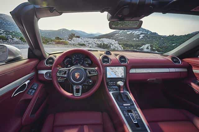 不同的是,在副驾驶前方的拉丝铝面板、软顶和机械指针转速表等细节上均采用了"Boxster 25"字样,以突出25周年纪念版的身份。