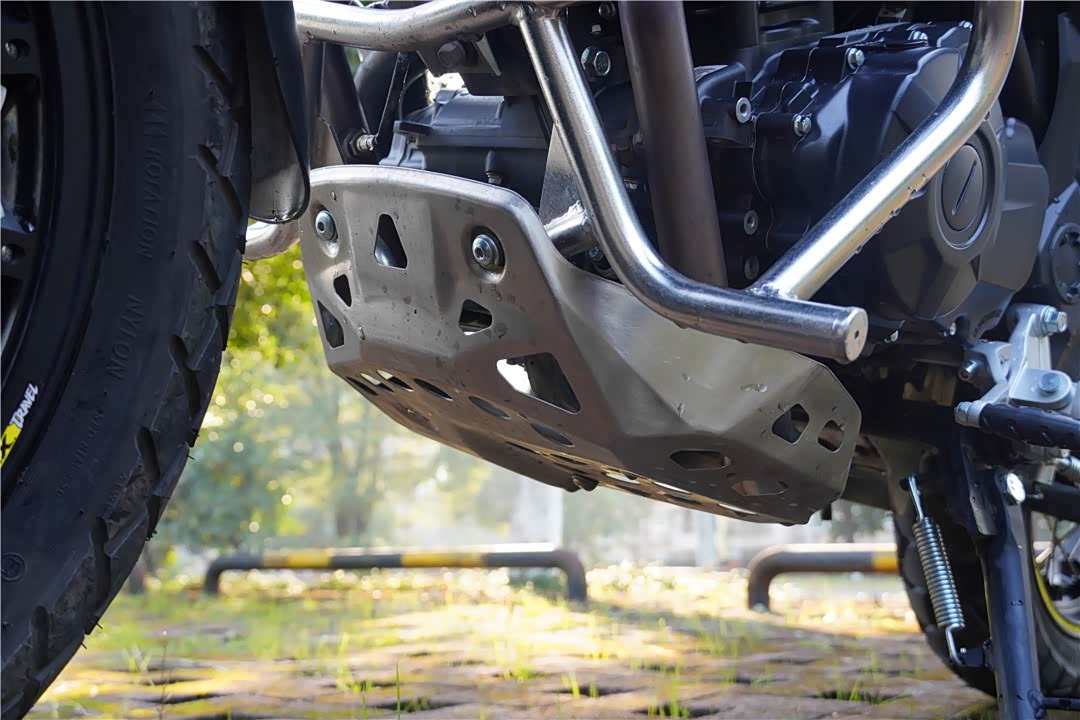 其他方面,2021款RX3S还加装了发动机护板、原厂车身护杠、主大撑支架、双油门拉线,后脚踏也更换为铝合金材质,原厂的铝合金三箱也进行了重新设计,造型更加好看。