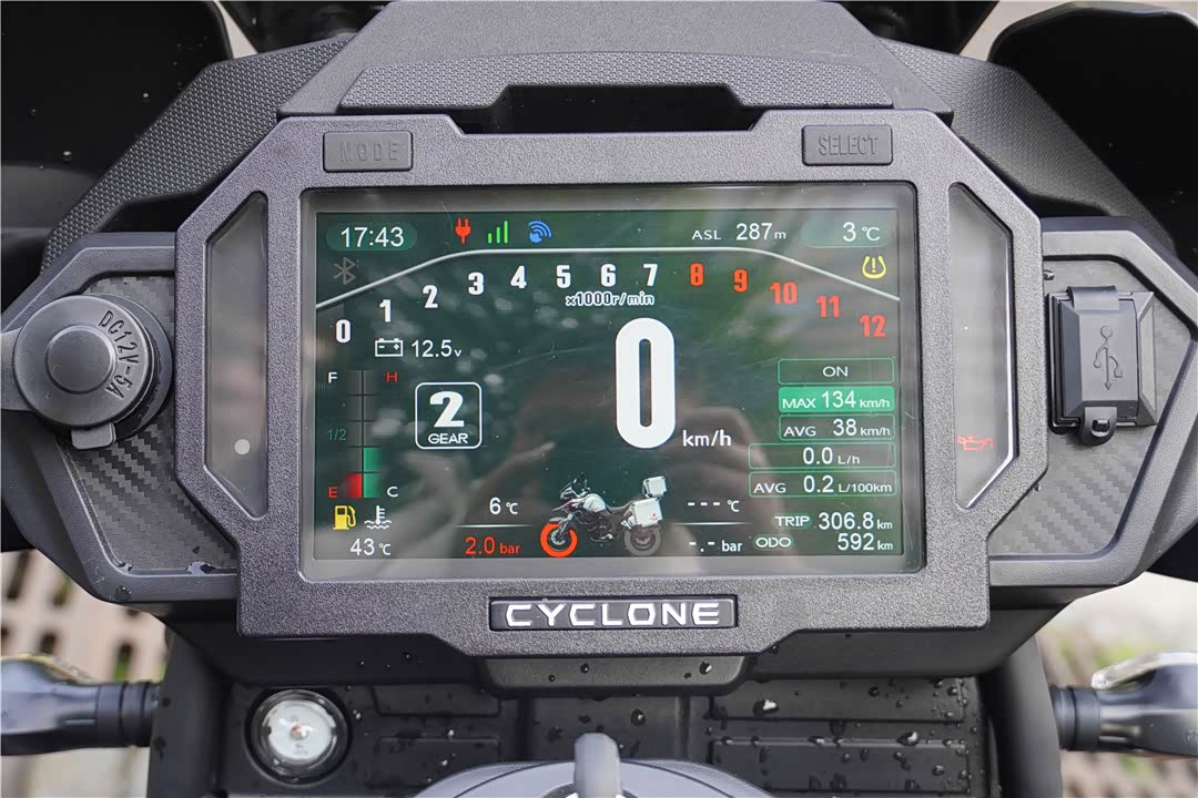 拥有更多实时信息显示的TFT液晶仪表也出现在2021款RX3S上,除了常规信息以外还能显示胎压、胎温、续航里程、瞬时油耗、环境温度等信息。加上背光手把开关的加持,整车的科技感提升不少。
