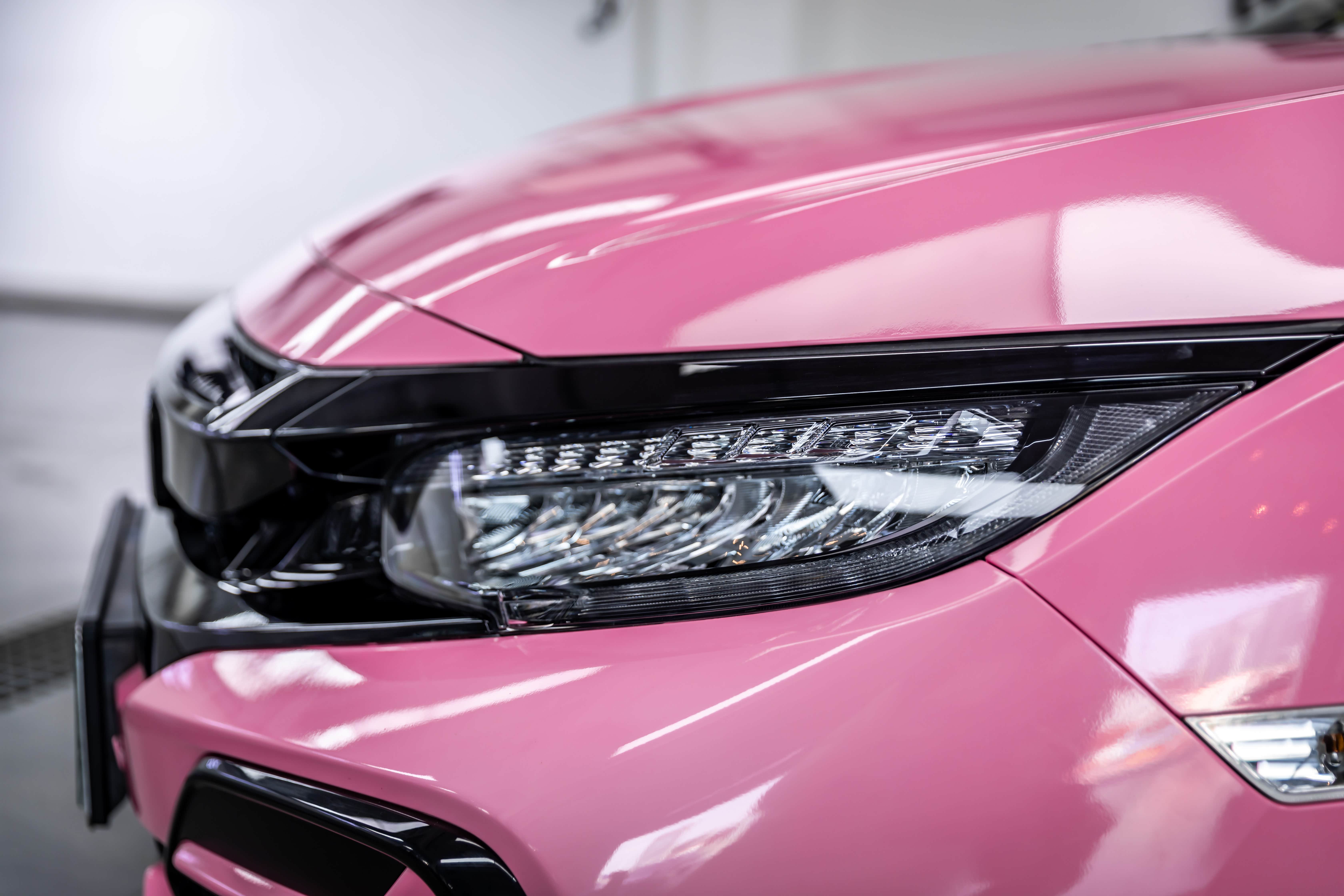 提车后,上好牌 第一件事 就是贴个喜欢的改色膜——高亮粉