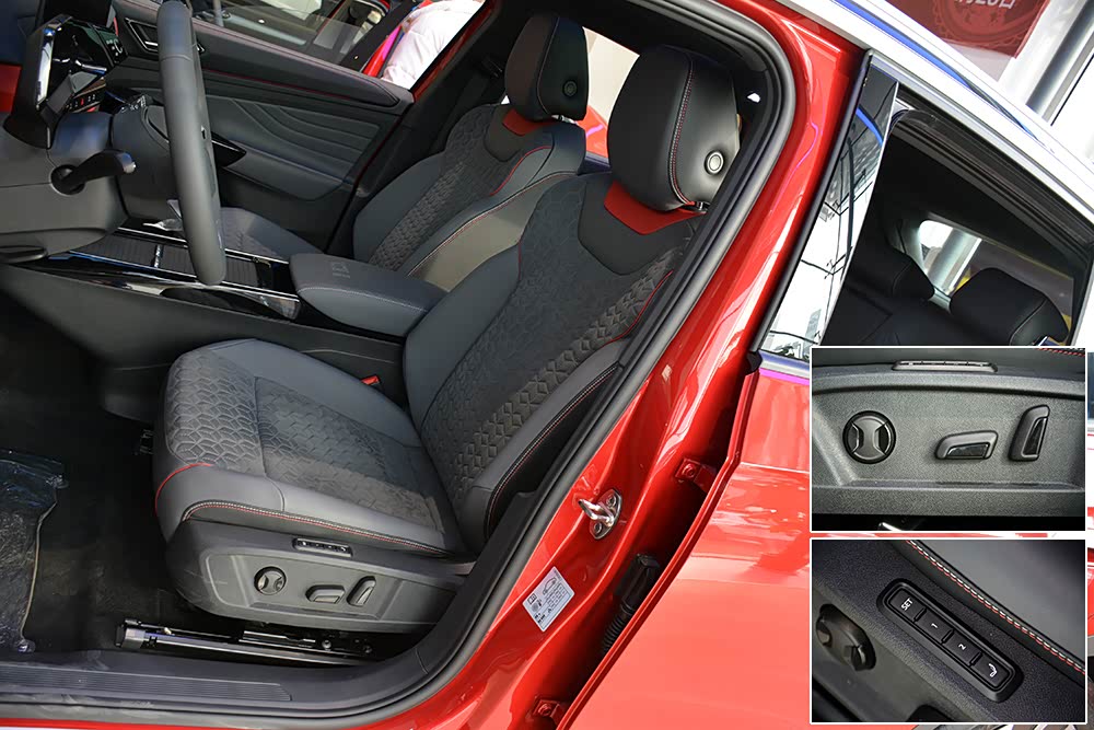 座椅方面,本次实拍上汽大众ID.4 X座椅采用了全皮革,并采用了普通皮革与翻毛皮两种不同材质拼接,加之独特的菱形花纹与红色缝线看上去更具运动感。此外,全系车型前排座椅均支持多向电动调节与加热功能,高配车型还支持按摩功能,主驾驶座椅拥有2组记忆功能。