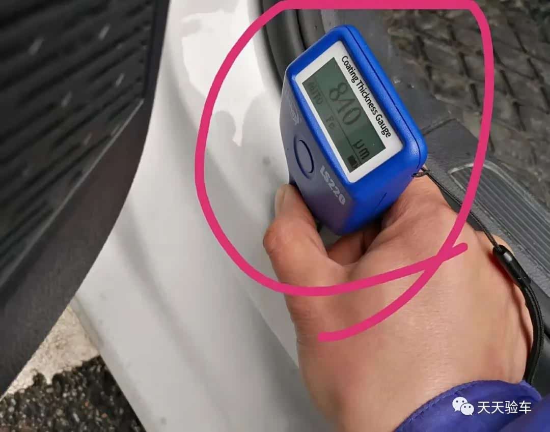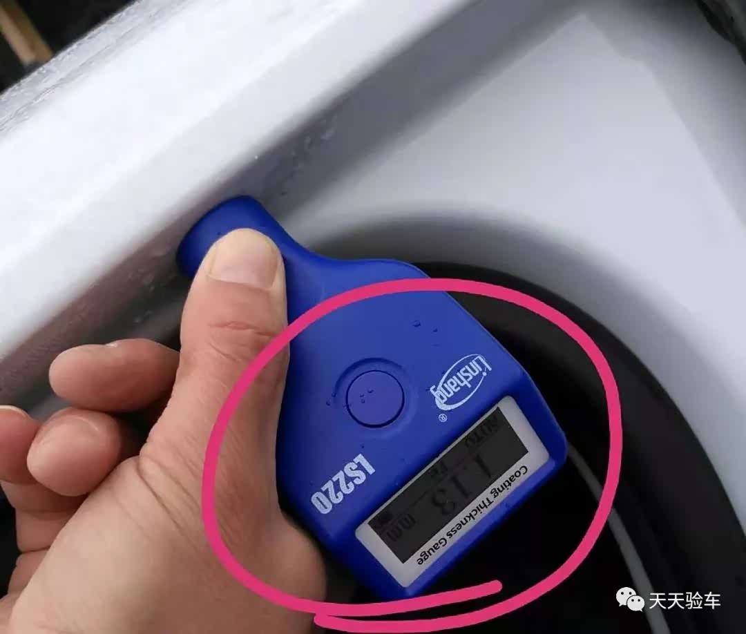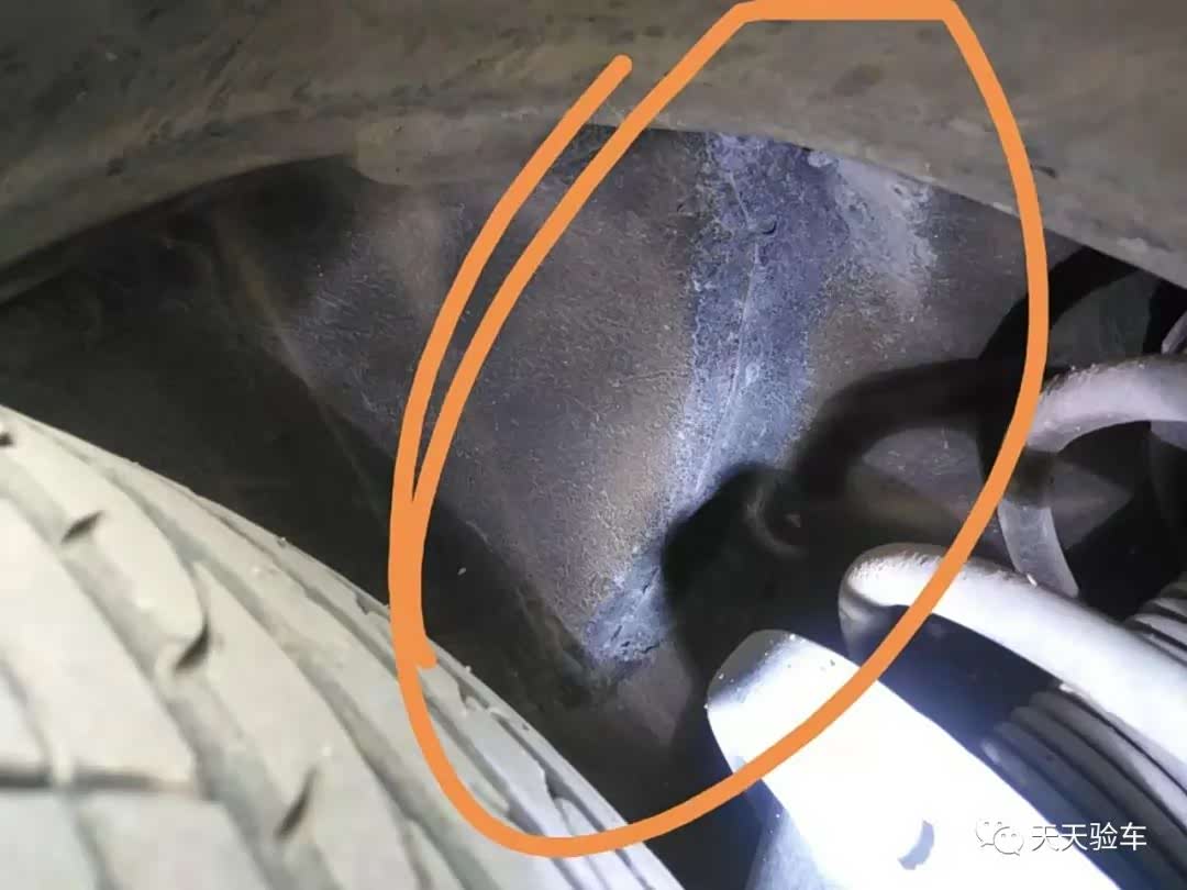 这是一台霸道,切割了后叶子板,不过切割位置非常特殊,就是直接切割下一块,然后又补了一块,就跟衣服打个补丁一样,从外面测量根本就测量不出来,只能测量出是有钣金喷漆;