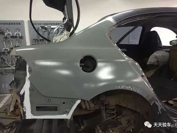 这个后叶子板切割,也是最常见的,也是检测二手车时见过最多的,后叶子板一旦无法钣金,通常都会这么切割;