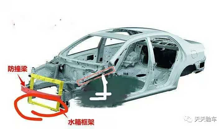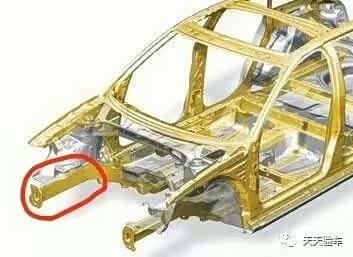 这是一台大众车(下边这张不是,只是标注位置),这台车的切割是直接从大梁的根部临近防火墙进行的切割;