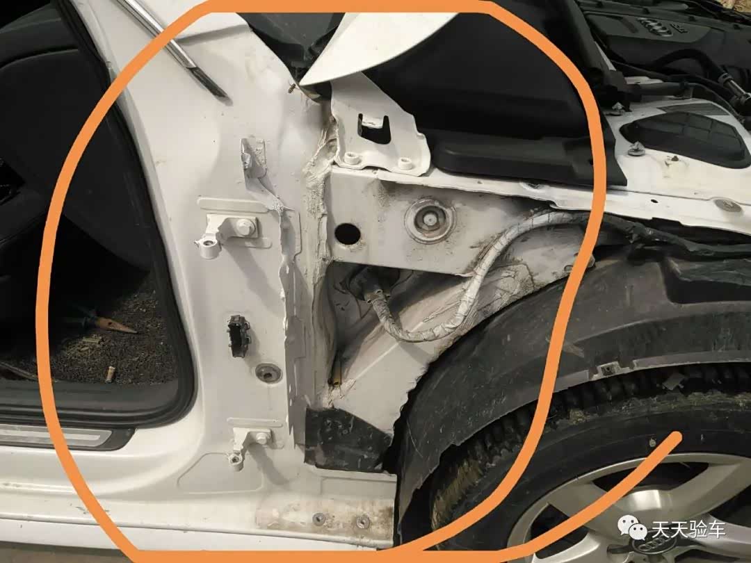车辆追尾后,严重点会伤到后围板,无法修复时会进行切割,部分车型对大梁的损伤也很大;