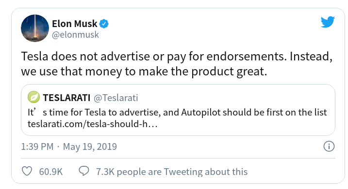 如果特斯拉不愿意做广告,它将不得不寻找其他方法来使其产品吸引更多的公众,而不是已经习以为常的公众。降价是一种有限的策略,不仅会影响其利润率,还会影响其车辆的车主。