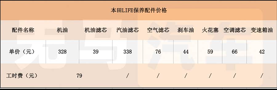 既然作为一款10万出头的较为平民的合资小车,由上表可以看到,LIFE的保养配件价格跟它本田的品牌是比较相对应的,整体来看都比较便宜,最贵的两项仅为机油和汽油滤芯,不过考虑到本田这台1.5L地球梦发动机的性能表现以及汽油滤芯更换的频率,这样的价格相对还算是合理的。