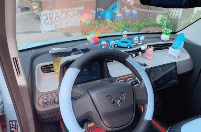 相信五菱宏光MINI EV的车主中有很多是女生,所以车内也是毫无保留的自我装饰,当然这些小小的玩具放在车内有些不太安全,最好还是不要放那么些的玩具。