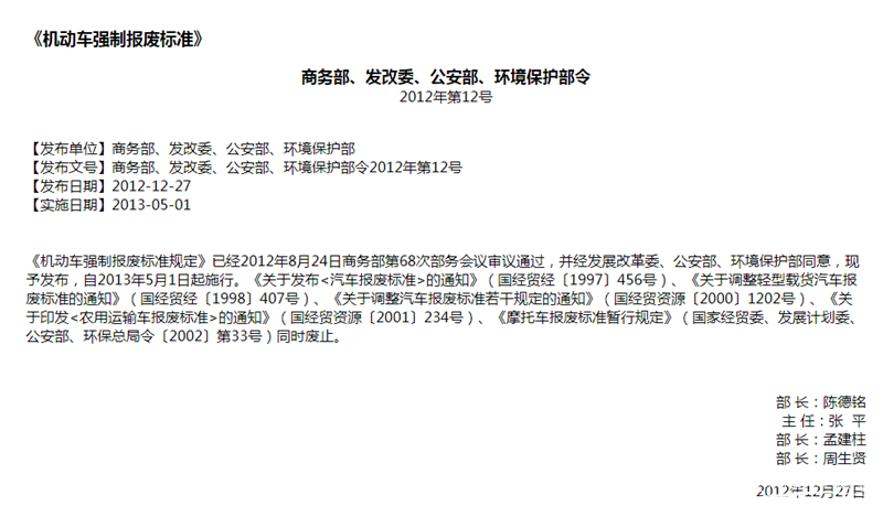 看完了这两段视频,笔者就开始查询关于皮卡报废的相关法律条文。在2012年发布的《机动车强制报废标准》中,找到了相关内容。