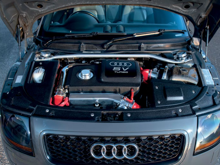 发动机方面,当年最为先进的1.8升20V气门BAM涡轮增压四缸发动机,升级了Simota碳纤维进气风箱,全车进气管路升级抛光金属管。高亮抛光进气门,SFS涡轮管路,Forge 竞技版硅胶管。TSR 赛用直通头段,Pipewerx 全段不锈钢排气系统。特调二阶ecu程序。