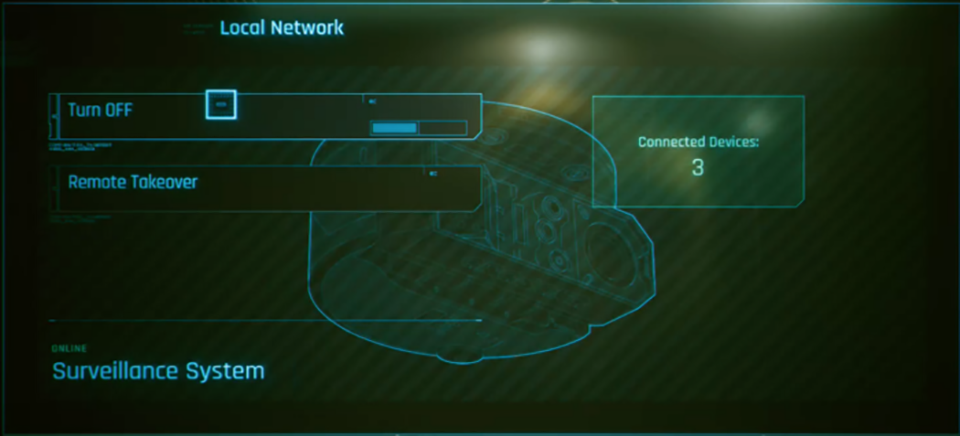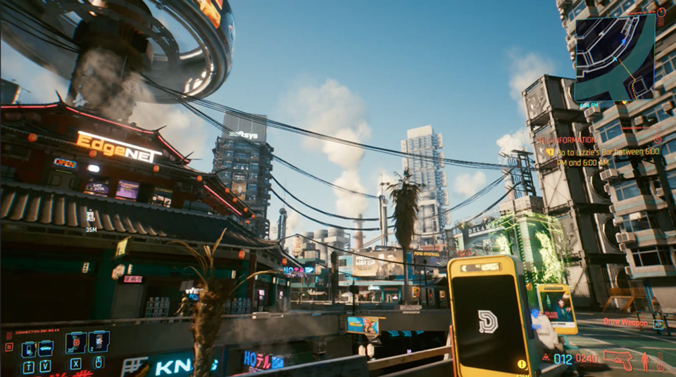 正如你在这里看到的,在2077年,人们仍然使用常规的电脑显示器,上面有常规的二维平面用户界面。