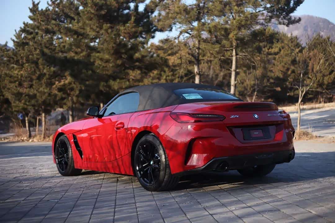 综合了我这个小家庭的用车需求以及各方面的因素后,最终选定25i的新车,配置需求必须要有远程启动、座椅加热、腰部支撑、无钥匙进入,其次是哈曼卡顿音响和HUD。颜色选择为除红色以外的所有颜色都可以,优先蓝色。但我万万没想到的是,我最后却买了一辆红色的Z4,还是曜夜版的车型。