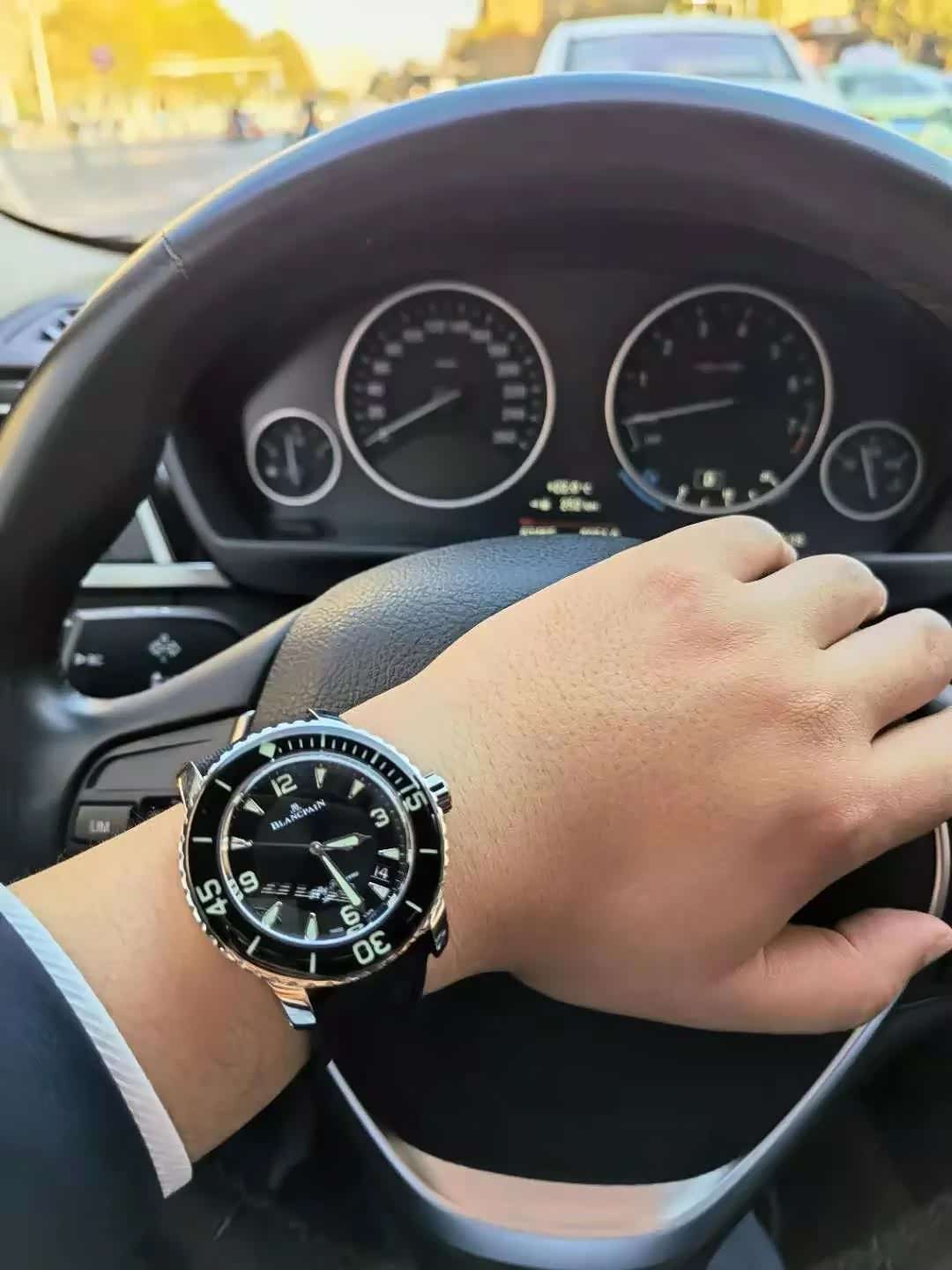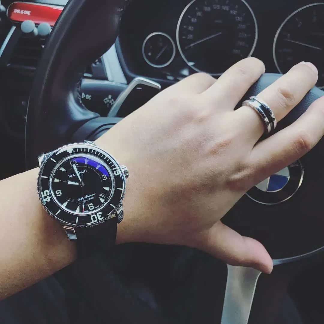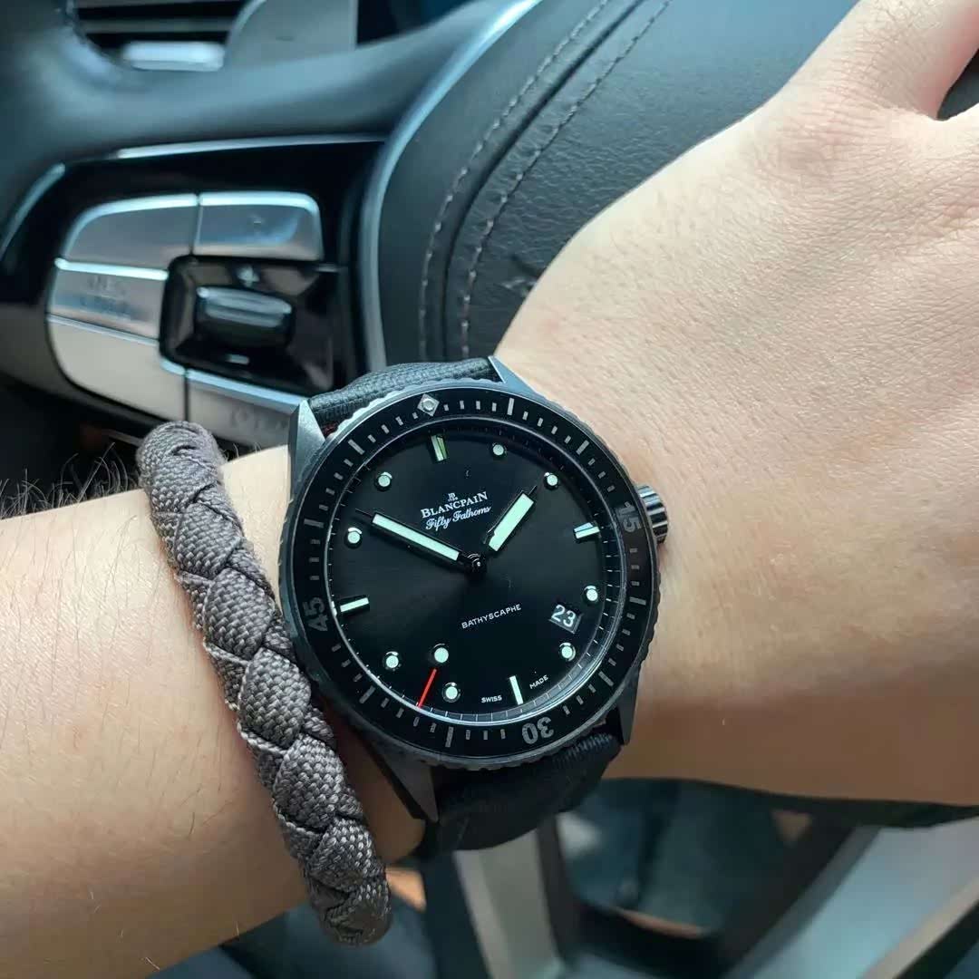 宝珀五十噚黑陶瓷,其实有好多花花绿绿的,或者大金表,但平时基本就戴这块,因为低调,机芯可靠,全黑但很有质感。