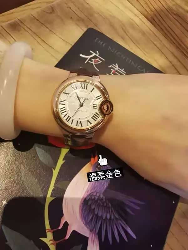 开新3系,戴卡地亚蓝气球,33cm,机械款,玫瑰金款,购买于北京卡地亚专柜,售价90000多元。个人感觉蓝气球非常的百搭,外形时尚、漂亮不说,玫瑰金色很衬托肤色,也非常有温柔感,搭配时装,或者休闲装都很好看!