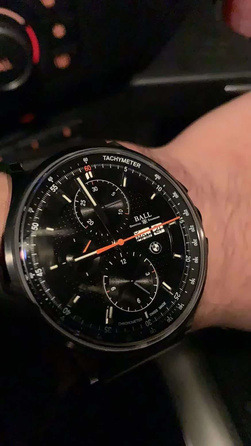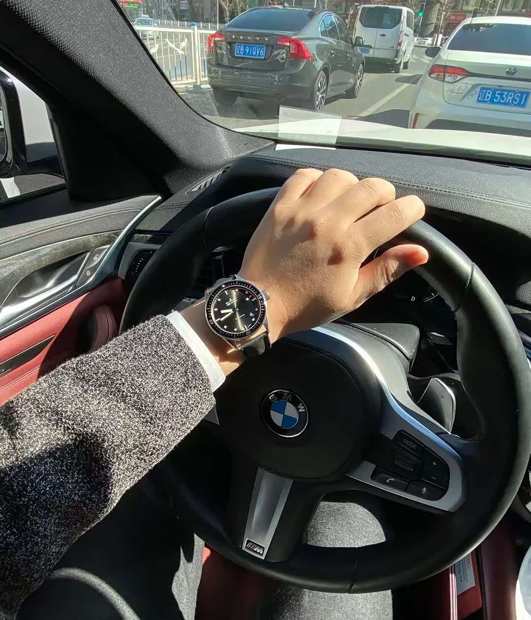 开宝马320i豪华,手表是波尔和宝马合作的手表。