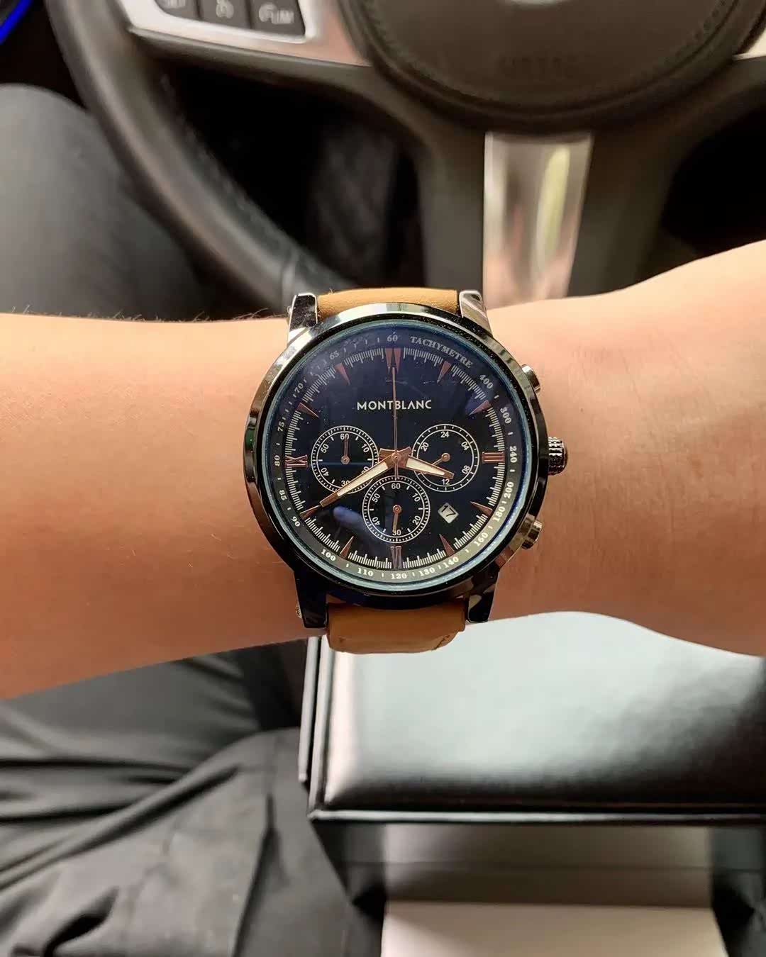 开2020款宝马325Li M运动曜夜套装,戴万宝龙时光者1151。